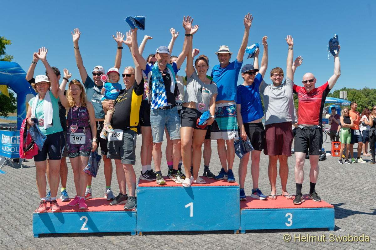 An beiden Tagen gab es jeweils auch ein Staffelrennen. Aufgrund der Regenfälle der vergangenen Tage lag die Wassertemperatur bei 21 Grad – somit durften Neoprenanzüge getragen werden.