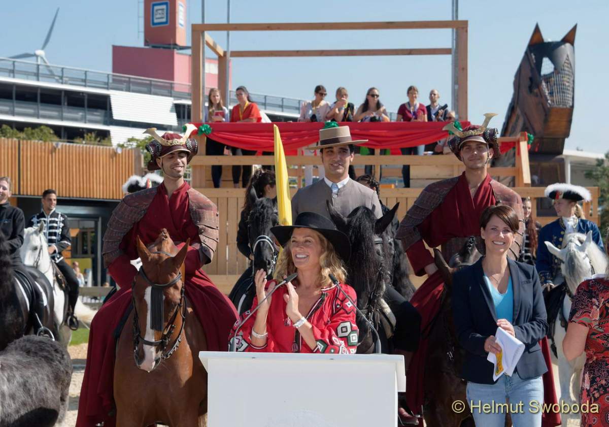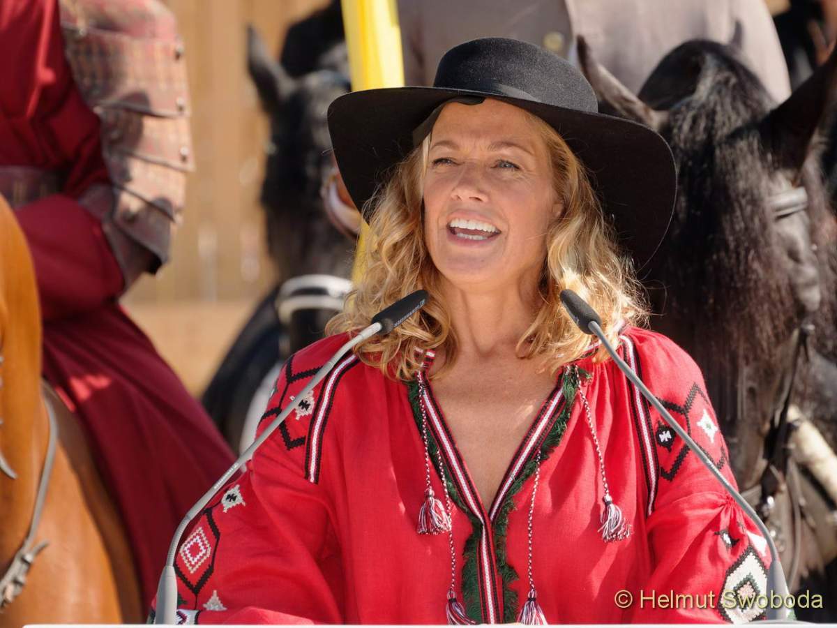 Marie Bäumer: „Ich bin glücklich, dass ich heute als Teil dieser großen Parade EQUILALAND mit einweihen durfte. Es ist schön, wenn Kinder und Erwachsene hier eine gute Auszeit vom rasanten Alltag genießen und mit Leichtigkeit und Freude in die Welt der Pferde eintauchen können. Deshalb wünsche ich EQUILALAND ganz viele Besucher, die sich für Pferde interessieren und noch mehr, die zu Fans und Freunden werden – das wäre das Größte!“