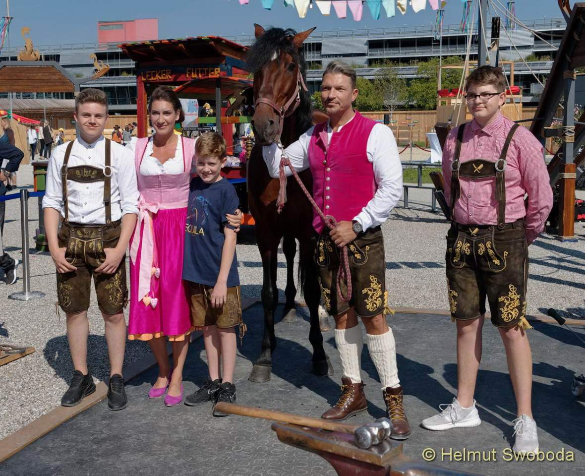 München, September 2018 – Bei strahlendem Sonnenschein wurde heute Deutschlands neue Freizeitattraktion EQUILALAND feierlich eingeweiht. Über 60 Showpferde und 80 Teilnehmer, darunter die zahlreichen Darsteller aus EQUILA, bildeten im Rahmen einer Eröffnungszeremonie eine farbenfrohe Parade. Angeführt wurde sie von einer 30-köpfigen Blaskapelle und einer Kutsche, die das rote Band durchfuhr und so den Erlebnispark für sein Publikum freigab. Anschließend gingen rund 900 geladene Gäste auf ihre erste Entdeckertour in der Pferde-Erlebniswelt in München-Fröttmaning.