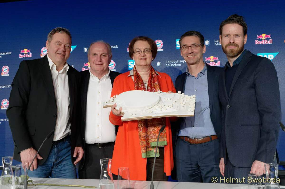 Uli Hoeneß, Präsident FC Bayern München eV: „Ich bin wirklich begeistert, wie es den Architekten des Gewinnerentwurfs gelungen ist, die Anmutung des geschichtsträchtigen Olympiaparks aufzunehmen. Die neue Halle wird weit mehr sein als eine hochmoderne Arena, in der sich die Fans, Sportler und auch unsere Basketballmannschaft wohl fühlen werden. Ich bin mir ebenso sicher, dass diese Sportarena mit ihrer schlüssigen Gestaltung inklusive des begrünten Daches ein architektonischer Blickfang und Gewinn für die Stadt München sein wird.“