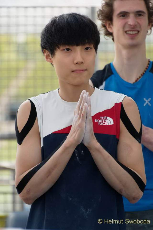 Problem zwei führte die Athleten zunächst an großen Slopern nach oben. Zwei Meter unter dem Top blieben aber nur noch Mini-Griffe. An diesen musste man zu einem recht guten Top-Griff springen. Ondra flashte auch dieses Problem, in dem allerdings auch die anderen Athleten das Top erreichten. Hojer machte es noch einmal spannend: Er konnte den Zielsprung zunächst nicht abfangen und pendelte wild. Doch er blieb hängen und verbesserte sich damit auf Platz 5: Jongwon Chon (KOR) brauchte zwei Versuche mehr.