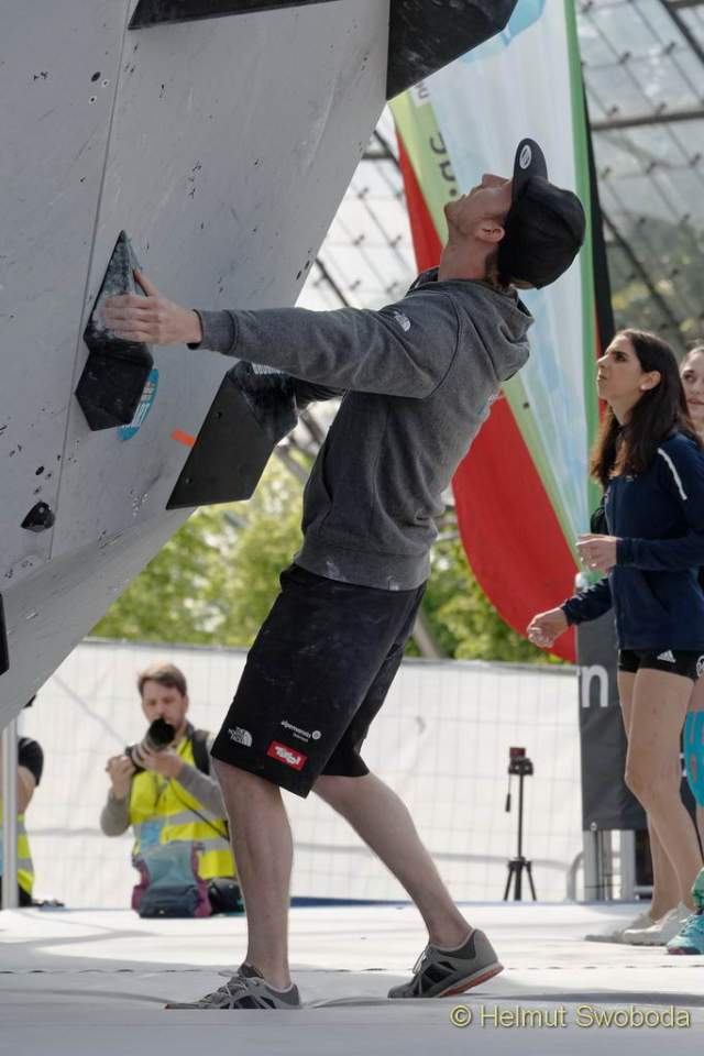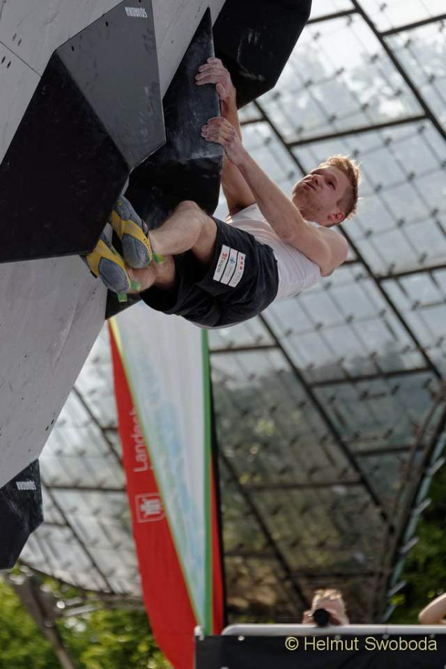 Für Hojer hing also alles von dem letzten Boulder ab. Dieser führte an großen Volumen dynamisch durch einen Überhang. Kraft und Dynamik waren hier gefragt – und genau das lag ihm. Als Einziger flashte er diesen Boulder und verbesserte sich auf Platz drei. Schubert schaffte dieses Problem im dritten Anlauf und schob sich auf Platz zwei vor. Ondra, auf dessen Sieg die Zuschauer nach den drei Flashs sicher schon Wetten abgeschlossen hatten, hob nicht wirklich ab. Er erreichte auch nicht die Zone und überlies dem Österreicher Schubert den obersten Podiumsplatz.