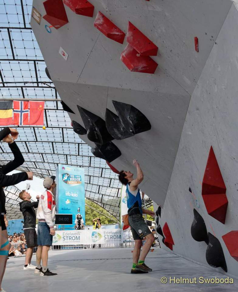 Nachdem viele Athleten in Boulder eins bis drei ähnliche Ergebnisse erzielten, kam es auf den letzten Boulder an! Leider konnte Megos hier das Ziel nicht erreichen, zwei Boulder und zwei Zonen platzierten den Erlanger auf dem 10. Platz. Hojer, derzeit in Top-Form, benötigte in dem überhängenden Boulder mit riesigen Volumen nur zwei Versuche. Er qualifizierte sich als Dritter für das Finale. Dort bekommt er es neben Chon und Ondra mit Jakob Schubert (AUT), Anze Peharc (SLO) und Aleksey Rubtsov (RUS) zu tun.