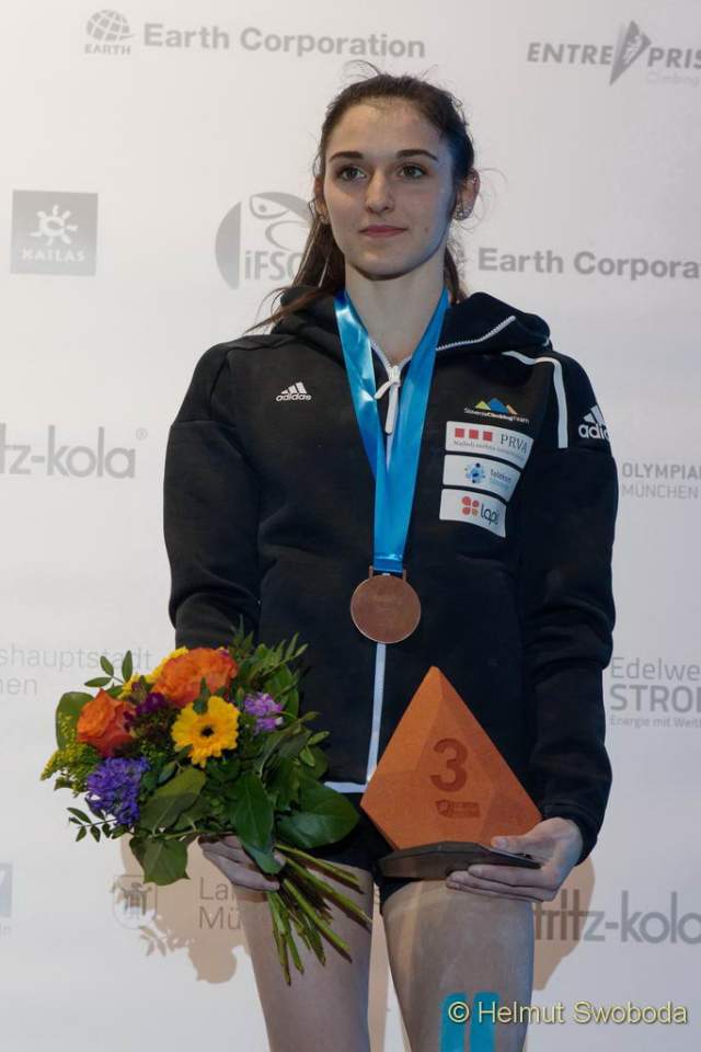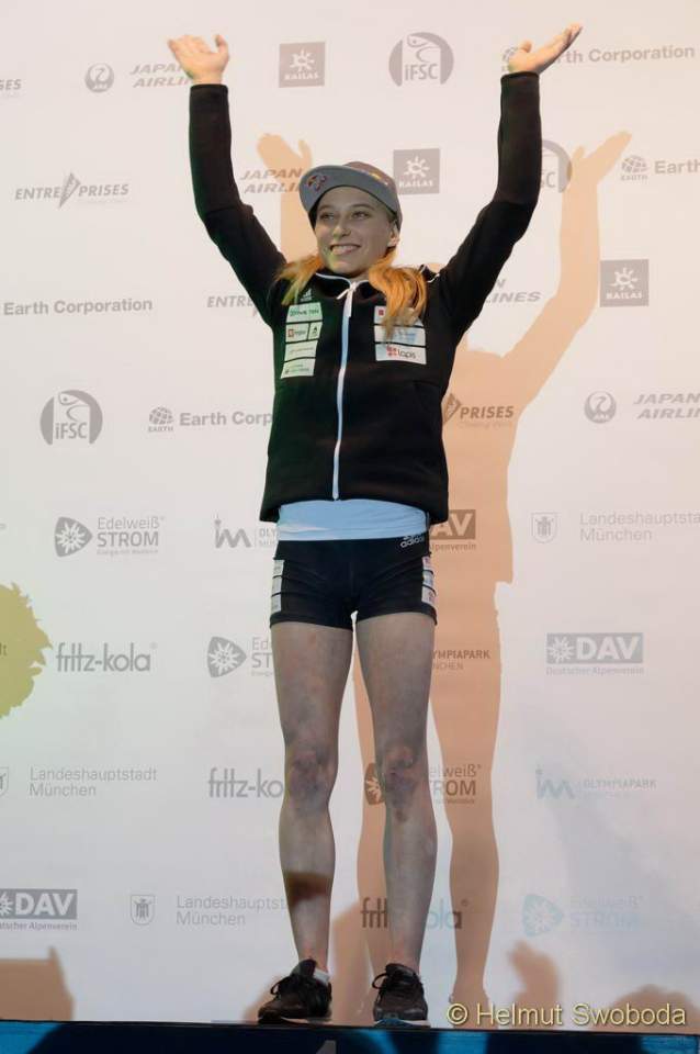 Eine tolle Leistung lieferte auch Mia Krampl ab, eine von insgesamt drei Sloweninnen im Finalteam. Die erst 18-Jährige war definitiv die Siegerin der Herzen: Von Beginn an plagten sie Probleme im Knie, sie versuchte nur auf einem Fuß zu landen. Bei jedem Versuch merkte man ihr den Schmerz sichtlich an. Trotzdem hielt sie durch – und wurde belohnt! Am Ende stand sie auf dem dritten Podiumsplatz. Und das in ihrer ersten Bouldersaison bei den Seniorinnen!