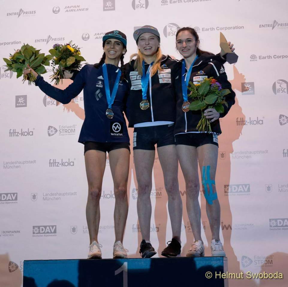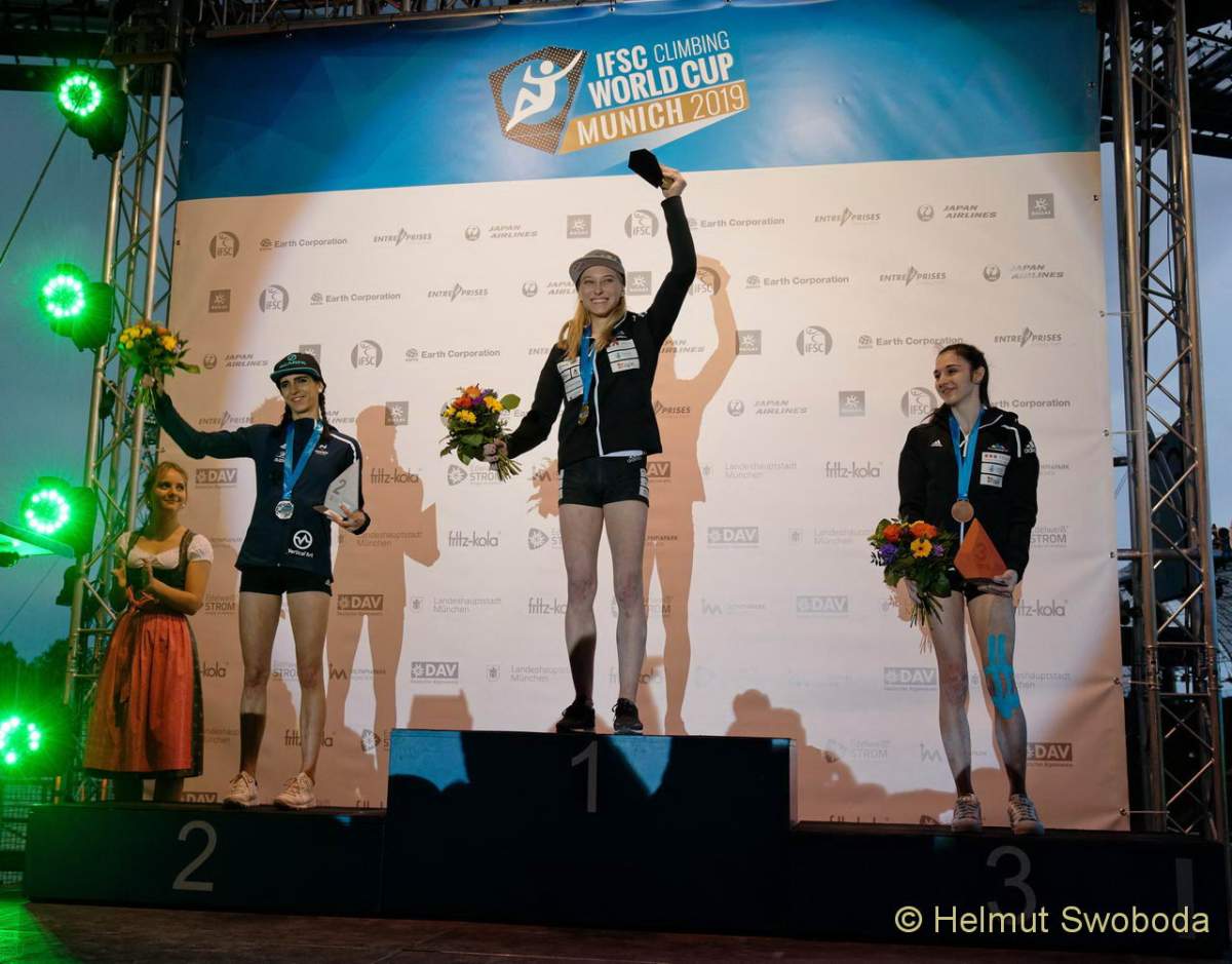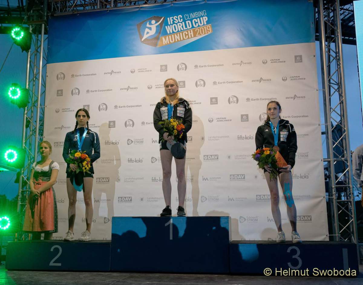 Vom anderen Stern präsentierte sich einmal mehr Janja Garnbret (SLO). Sie konnte als einzige Athletin alle Boulder toppen. Das verdeutlicht die ungeheure Form, in der sich die Ausnahme-Kletterin im Moment befindet. Zweite wurde Ievgeniia Kazbekova (UKR), die immerhin einen Boulder flashen konnte, doch auch sie erreichte keine weitere Zone. Außerdem im Finale dabei: Katja Kadic (SLO), Mia Krampl (SLO), Julia Chanourdie (FRA) und Fanny Gibert (FRA). Drei Sloweninnen zeugen von der unglaublichen Team-Leistung der slowenischen Mannschaft. Die ebenfalls starken Japanerinnen waren in München nicht dabei: Zeitgleich mit dem BWC findet in Japan ein interner Wettkampf statt, bei dem die Olympia-Kandidaten und Kandidatinnen gerankt werden.