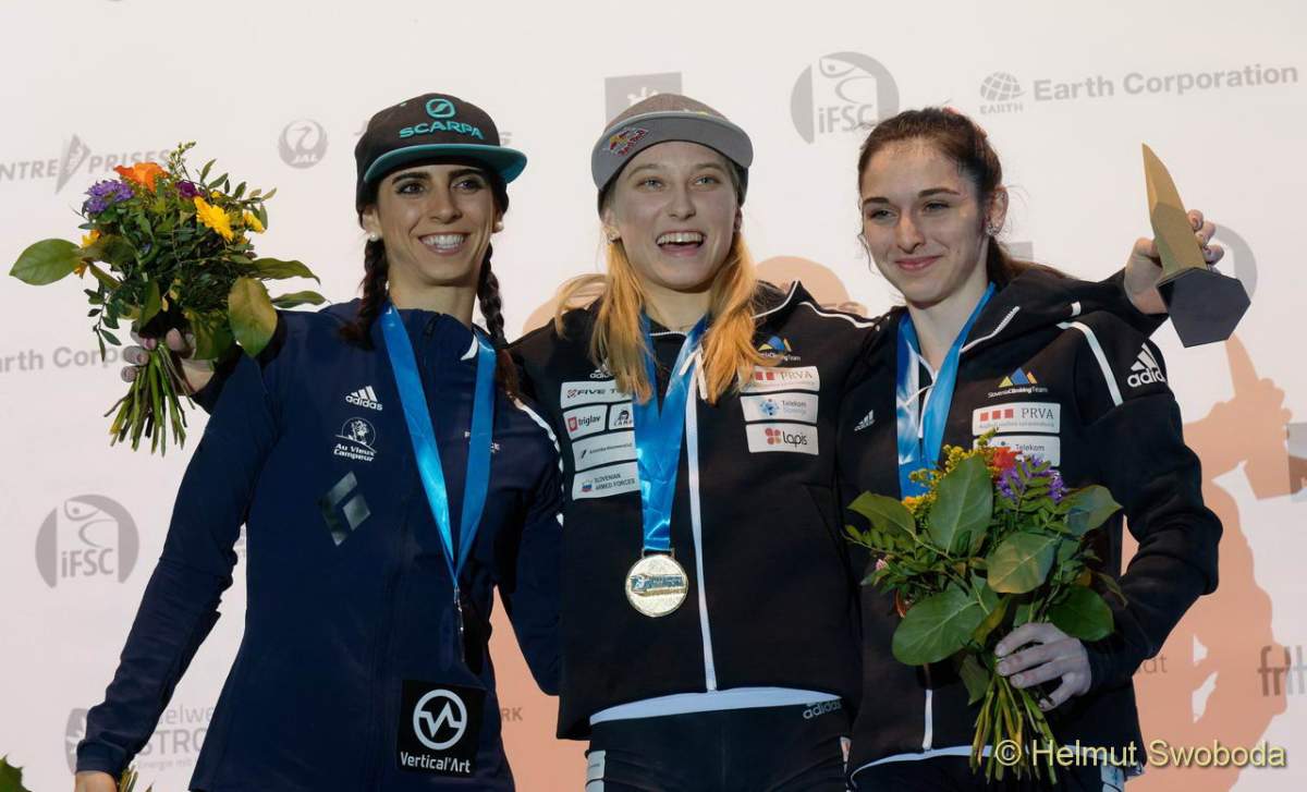Es war wieder einmal Janja Garnbret, die diese Runde dominierte – wenn auch nicht so klar wie im Halbfinale. Zwar konnte sie alle Boulder bezwingen, jedoch nicht im Flash. Am Ende kam ihr die Französin Fanny Gibert noch einmal gefährlich nahe: Auch sie konnte alle Probleme lösen. Drei Versuche mehr verwiesen sie auf den zweiten Platz. Für Janja Garnbret ist es der fünfte Sieg in fünf Wettkämpfen. Damit hat sie heute auch vorzeitig den Gesamtweltcup gewonnen.