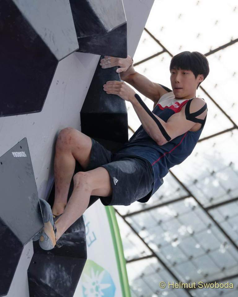Problem zwei führte die Athleten zunächst an großen Slopern nach oben. Zwei Meter unter dem Top blieben aber nur noch Mini-Griffe. An diesen musste man zu einem recht guten Top-Griff springen. Ondra flashte auch dieses Problem, in dem allerdings auch die anderen Athleten das Top erreichten. Hojer machte es noch einmal spannend: Er konnte den Zielsprung zunächst nicht abfangen und pendelte wild. Doch er blieb hängen und verbesserte sich damit auf Platz 5: Jongwon Chon (KOR) brauchte zwei Versuche mehr.