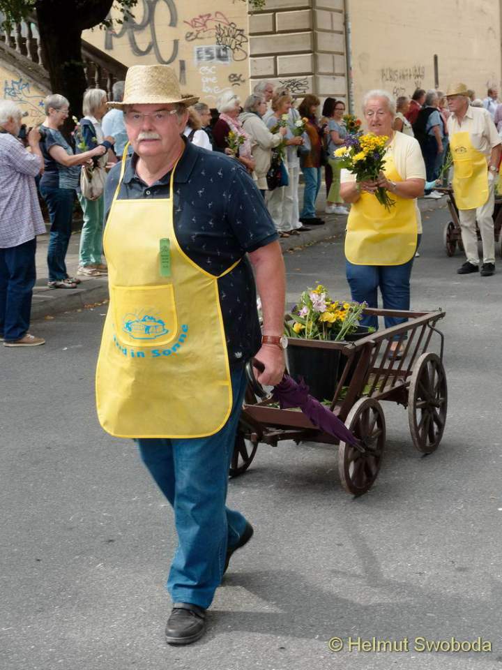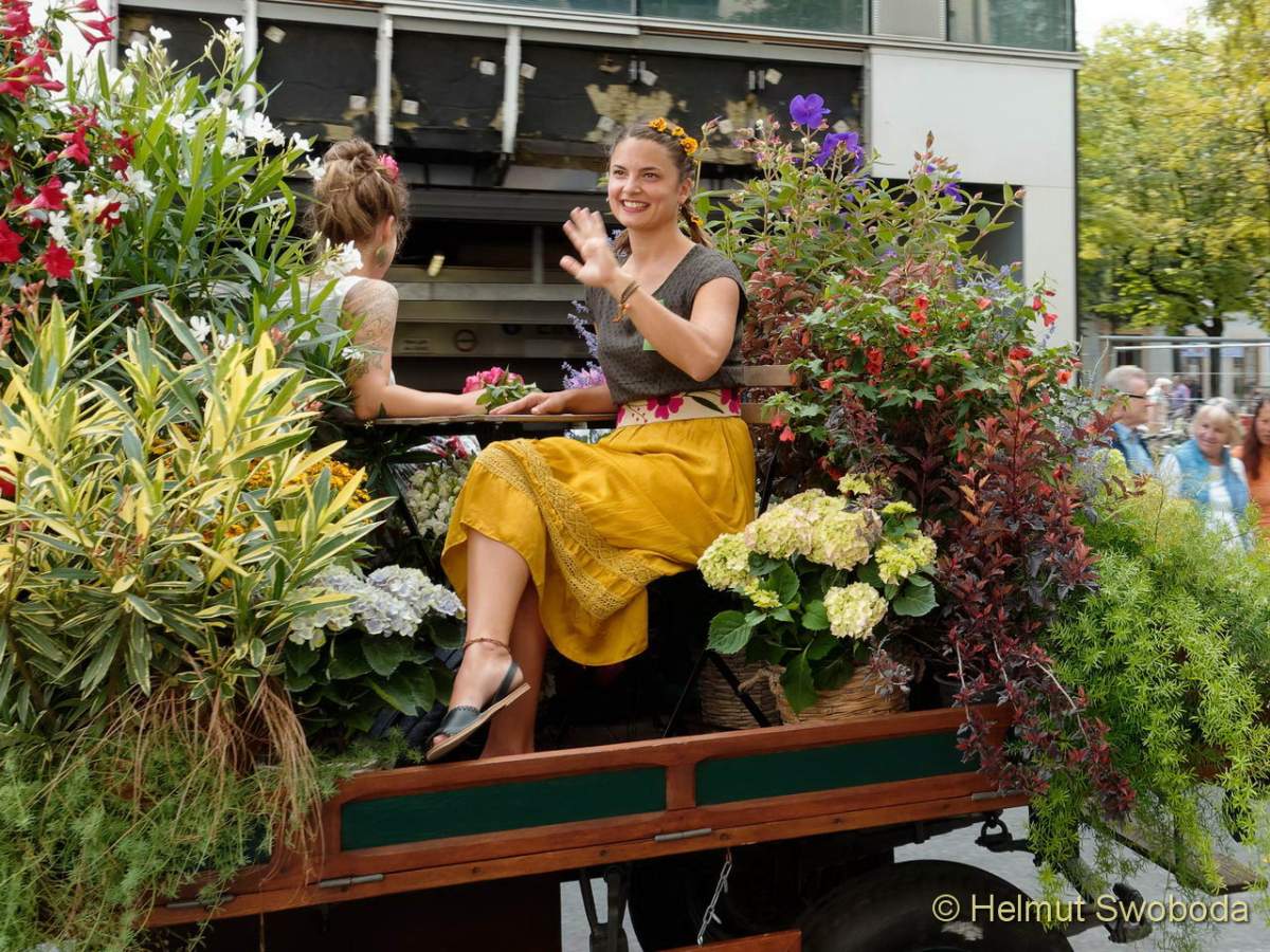 Während des Umzugs durften sich die Zuschauer auf Blumengeschenke freuen. Der Festumzug ging danach weiter zum Hofbräuhaus, wo es für die Gärtner und geladene Gäste einen festlichen Empfang gab.