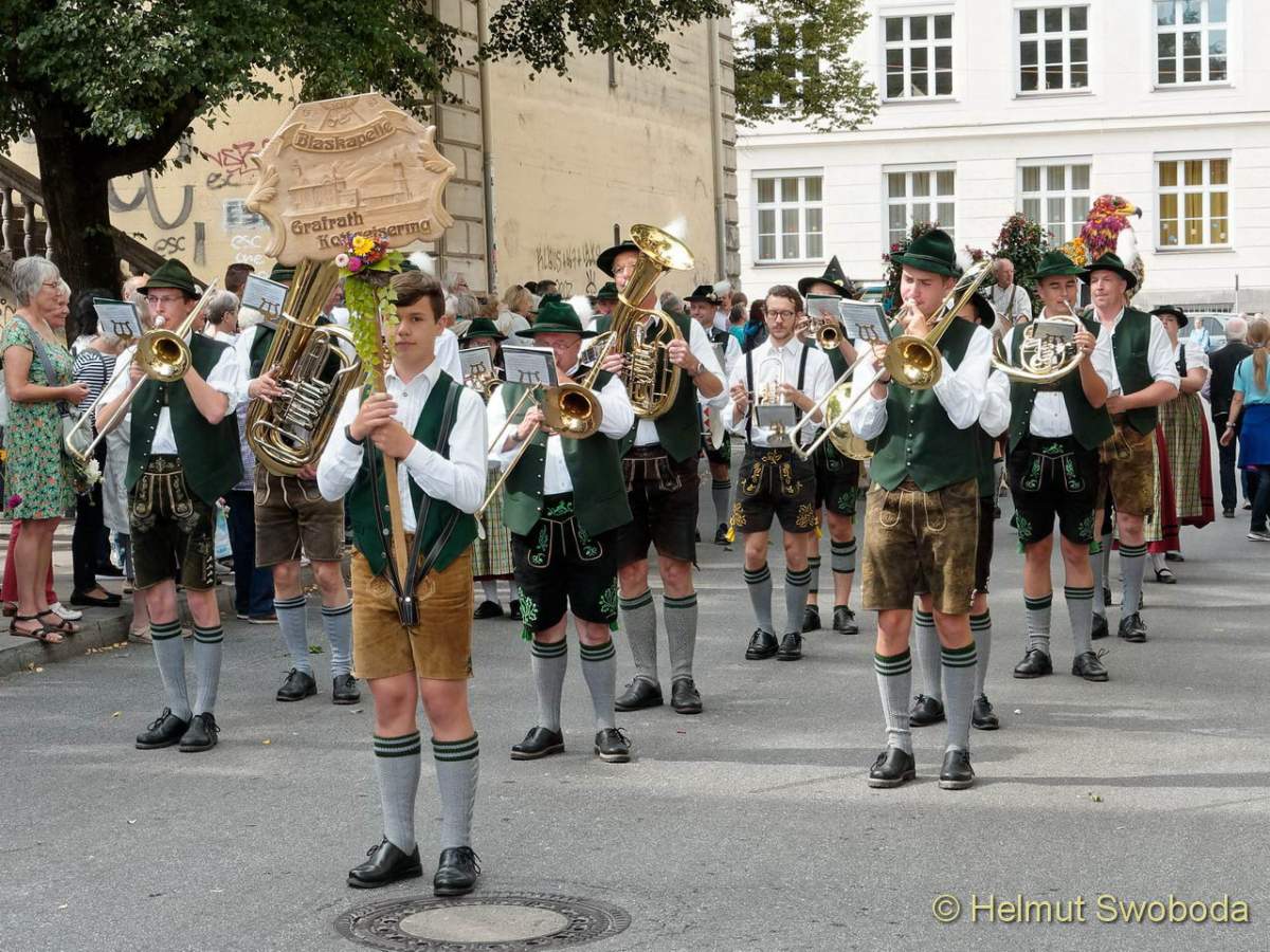 Am Vormittag, den 06.08.2019 begann der Gärtnerjahrtag mit einem Standkonzert am Viktualienmarkt. Anschließend zogen die Gärtner in einem Festumzug mit reichgeschmückten Pferdegespannen, Blasmusik und gemüsebeladenen Traktoren von der Schrannenhalle über den Viktualienmarkt zum „Alten Peter“, wo anschließend ein Gottesdienst stattfand.