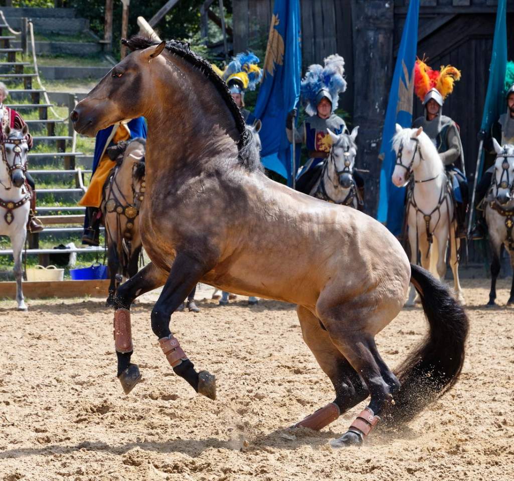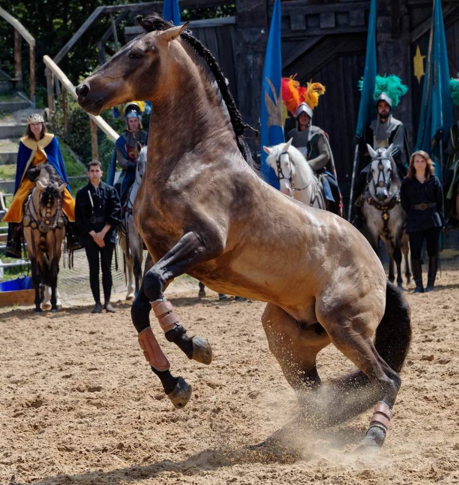 Einer der faszinierendsten Bestandteile der zweistündigen Show sind die Pferde. Ausgebildet von Europas führendem Pferdestunttrainer Mario Luraschi zeigen die 18 kraftvollen Hengste Höchstleistungen in Präzision und Eleganz. Nur so können die erfahrenen Kaskadeure der französischen Stuntgruppe Cavalcade perfekt choreographierte Stunts in vollem Galopp ausführen.