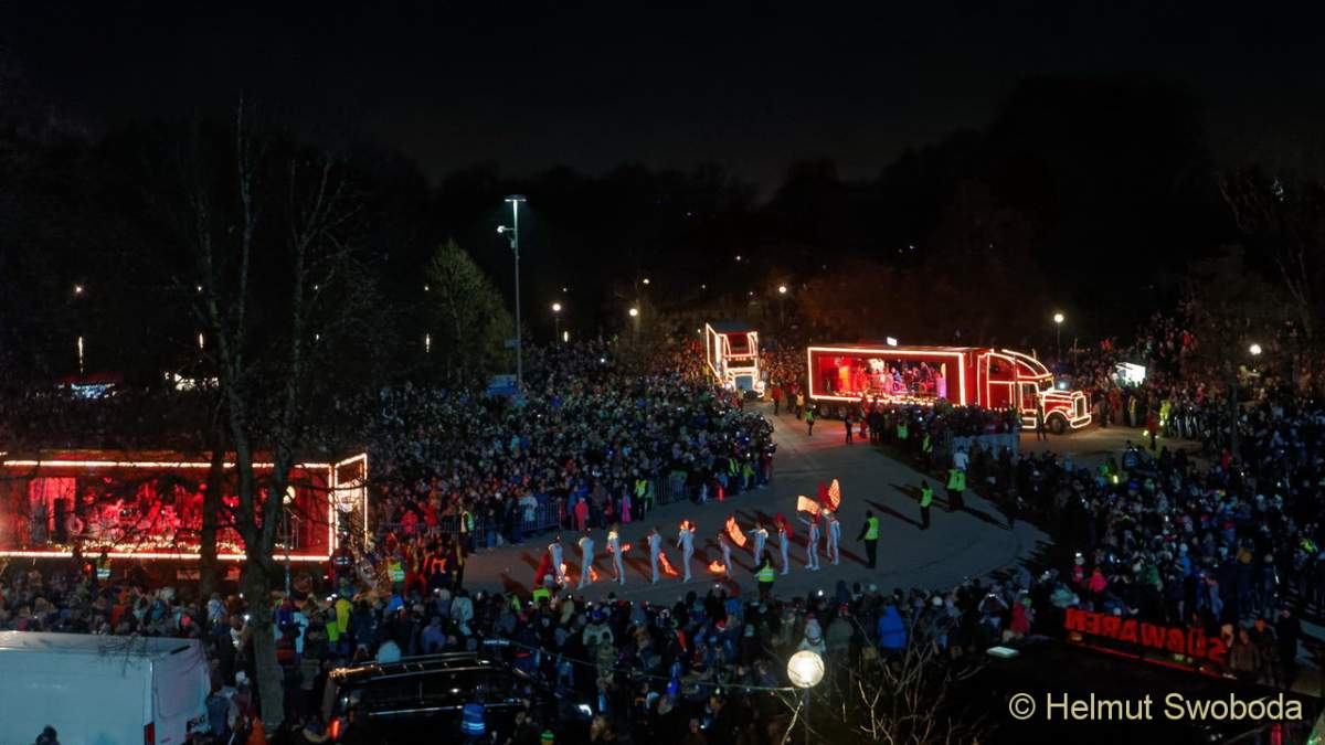 München stimmt sich mit Coca-Cola auf Weihnachten einVorfreude auf das schönste Fest des Jahres dürfte spätestens heute bei den Besuchern der Parade angekommen sein. Gemeinsam mit Santa Claus feierten sie die magischen Weihnachtsmomente und stimmten sich auf Weihnachten ein. Alle Besucher wollten einen Blick auf die großen roten Trucks werfen, die man seit vielen Jahren aus einem TV-Spot kennt, und so ein Teil der Parade werden. Ein paar glückliche Gewinner konnten sogar über Vorabverlosungen eine vorweihnachtliche Überraschung der besonderen Art gewinnen. Sie fuhren in einem der berühmten Trucks mit und wurden von den Besuchern bejubelt. Besonderes Highlight waren die Showeinlagen auf den einzelnen Trucks.