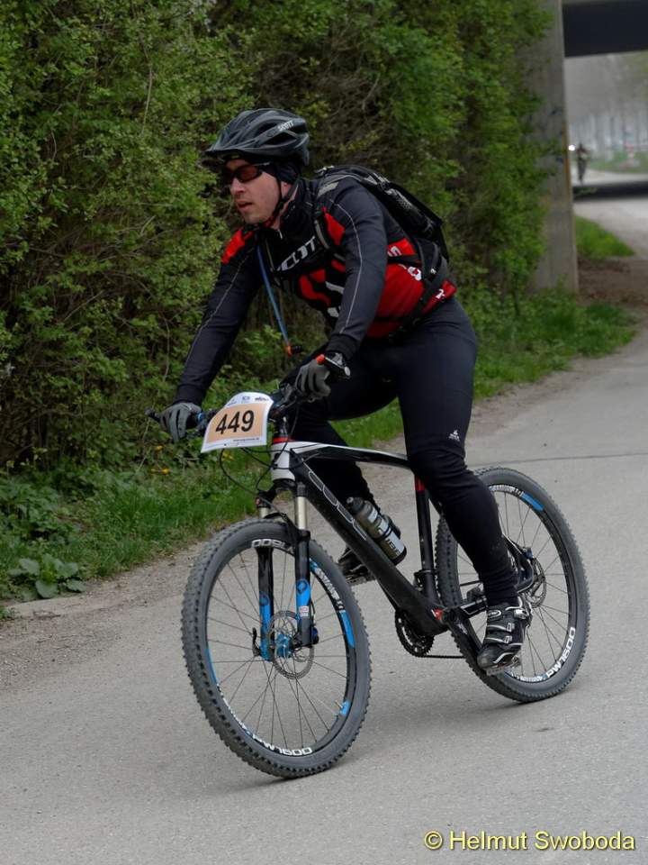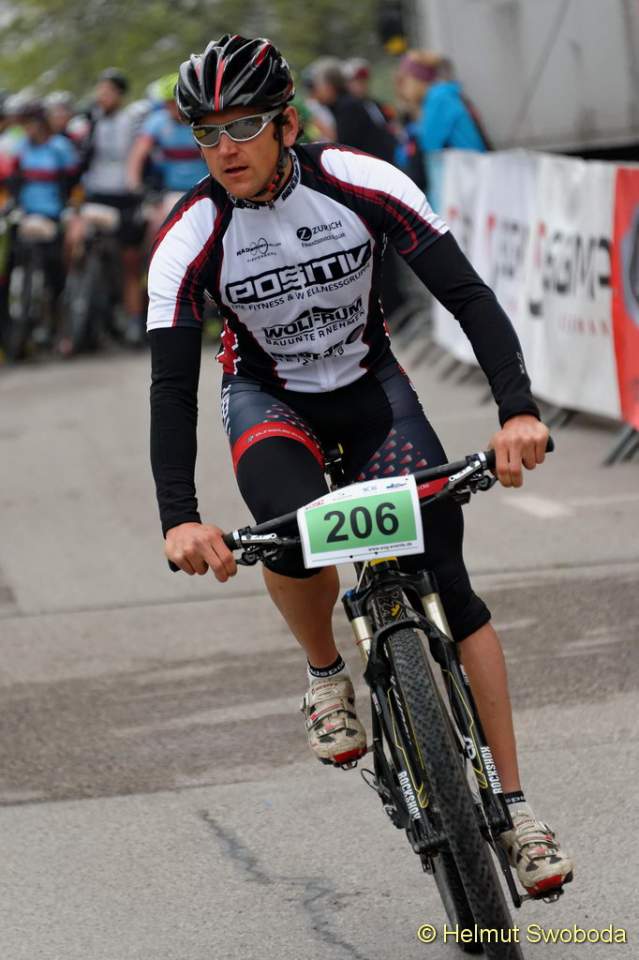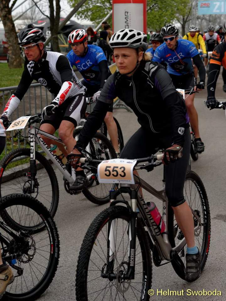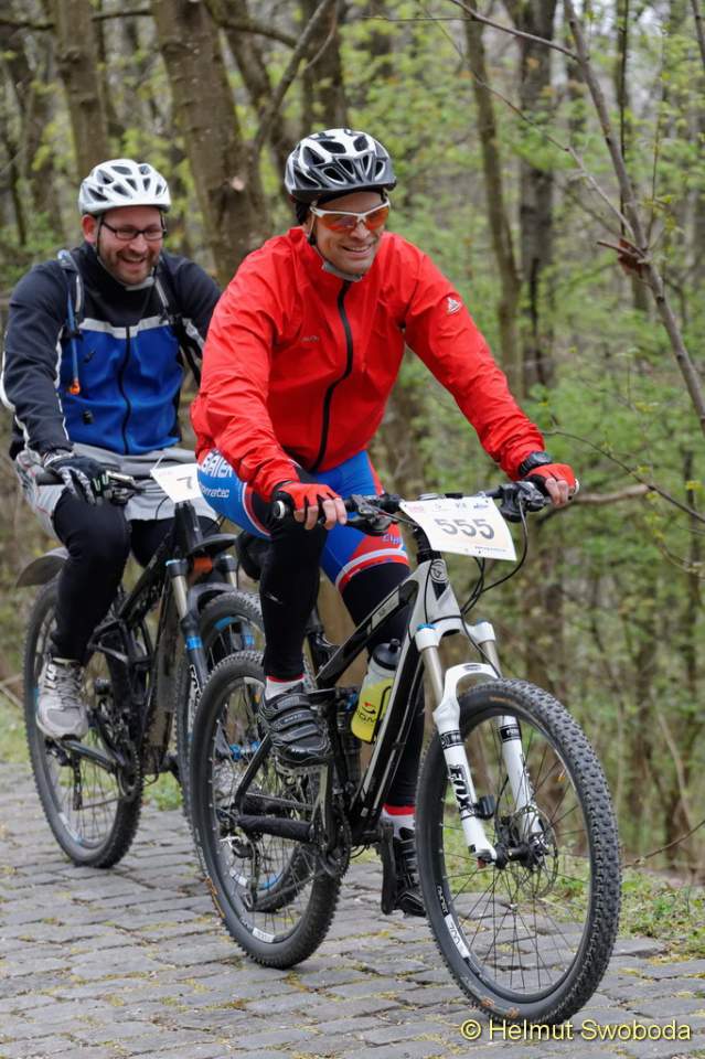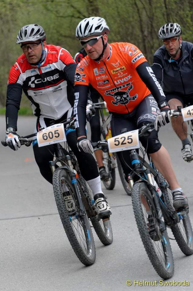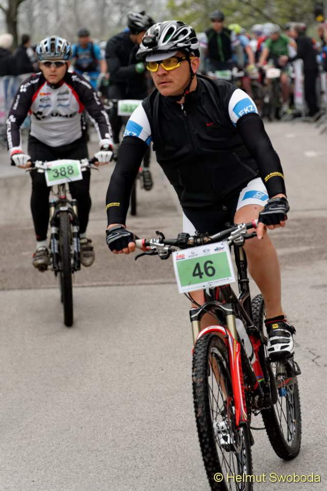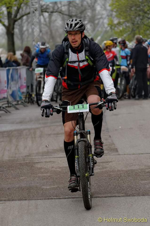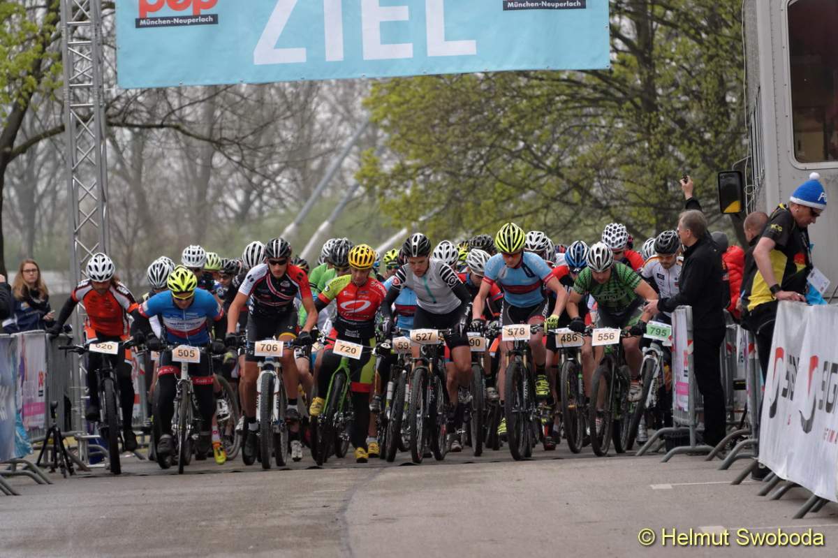 An der Spitze des Hauptrennens über die Langdistanz ging es um eine erste Standortbestimmung zu Saisonbeginn. Mit Durchschnittsgeschwindigkeiten von um die 40 km/h konnten die MTB-Profis zeigen, was sie nach einem warmen Winter bereits drauf haben. Wie in den vergangenen Jahren suchten die Favoriten eine Vorentscheidung kurz vor dem Ziel am Olympiaberg. Doch erneut gelang es keinem sich abzusetzen. Rupert Palmberger (Team Centurion Vaude), Sieger des CBM von 2012 und Zweiter im Vorjahr, führte bis zur Zielgerade neben dem Olympiastadion, wo sich sein Hauptverfolger Matthias Leising (Kreidler Werkteam) neben ihn schob und auf dem Zielstrich mit nur einer Speichenbreite Vorsprung in 2:01:20 Stunden gewann! Deutlicher dagegen der Sieg von Gabi Stanger (Team Centurion Vaude) bei den Frauen in 2:12:27 Stunden.