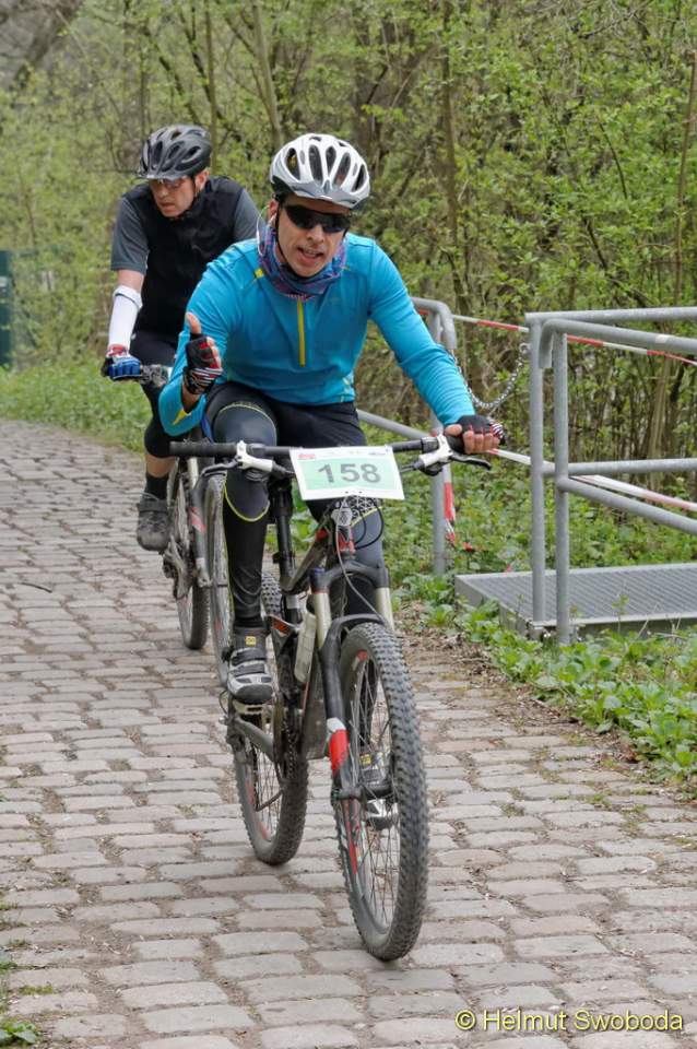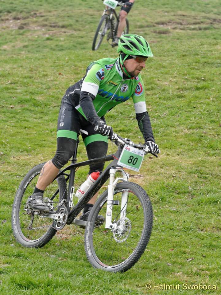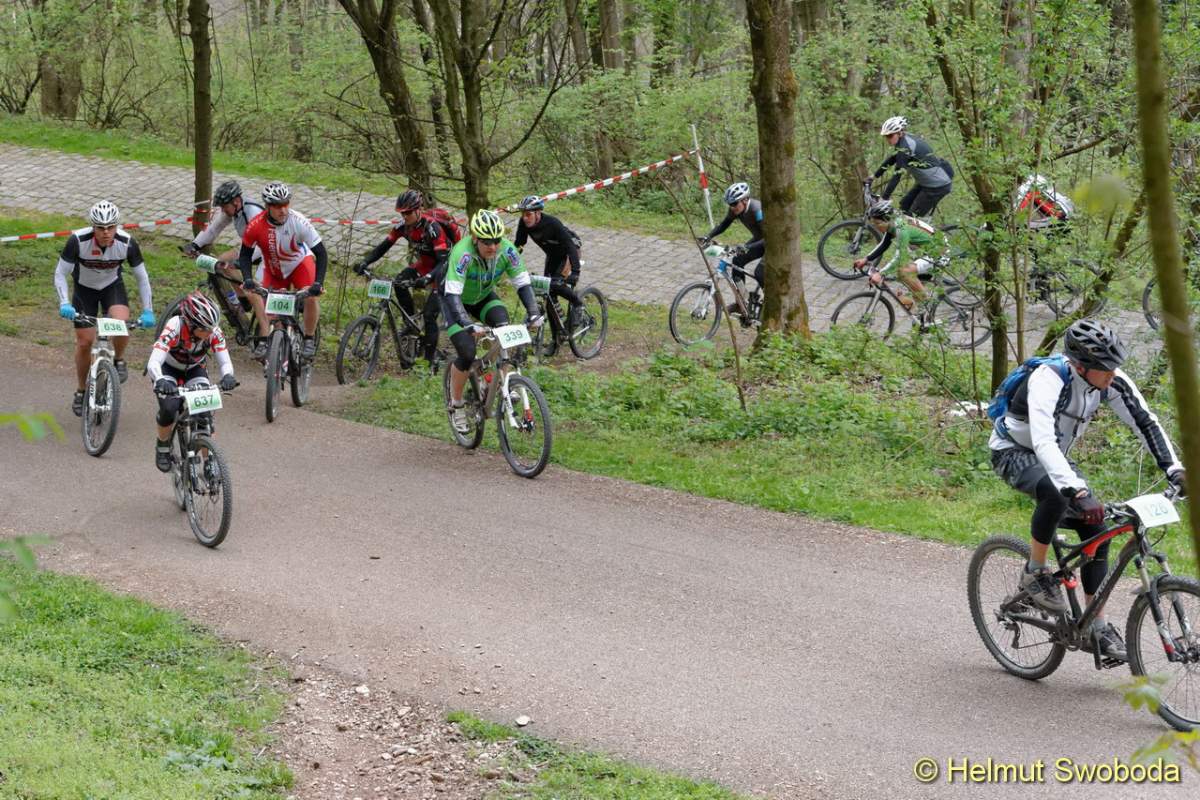An der Spitze des Hauptrennens über die Langdistanz ging es um eine erste Standortbestimmung zu Saisonbeginn. Mit Durchschnittsgeschwindigkeiten von um die 40 km/h konnten die MTB-Profis zeigen, was sie nach einem warmen Winter bereits drauf haben. Wie in den vergangenen Jahren suchten die Favoriten eine Vorentscheidung kurz vor dem Ziel am Olympiaberg. Doch erneut gelang es keinem sich abzusetzen. Rupert Palmberger (Team Centurion Vaude), Sieger des CBM von 2012 und Zweiter im Vorjahr, führte bis zur Zielgerade neben dem Olympiastadion, wo sich sein Hauptverfolger Matthias Leising (Kreidler Werkteam) neben ihn schob und auf dem Zielstrich mit nur einer Speichenbreite Vorsprung in 2:01:20 Stunden gewann! Deutlicher dagegen der Sieg von Gabi Stanger (Team Centurion Vaude) bei den Frauen in 2:12:27 Stunden.