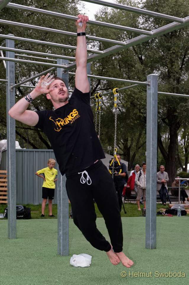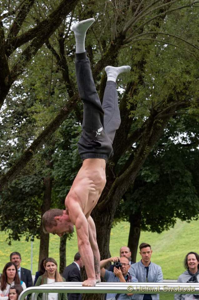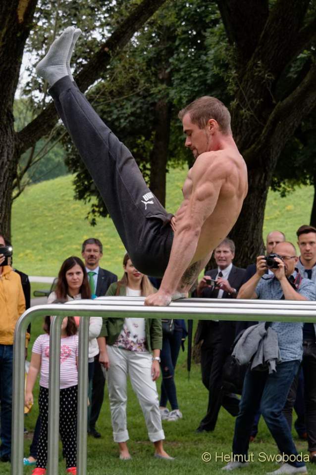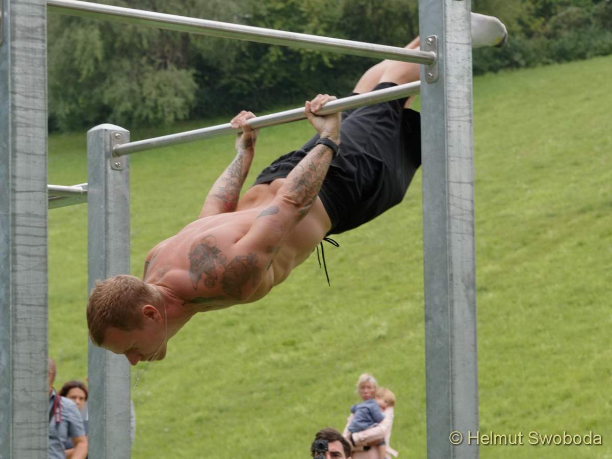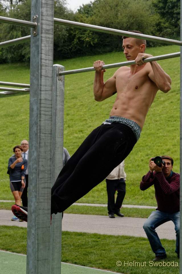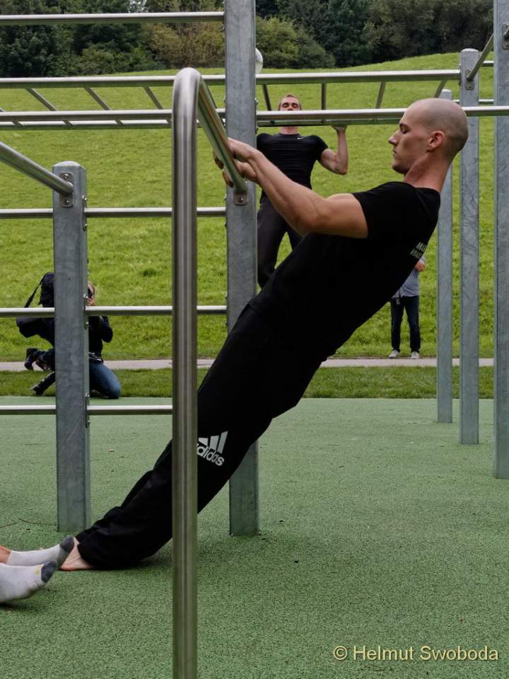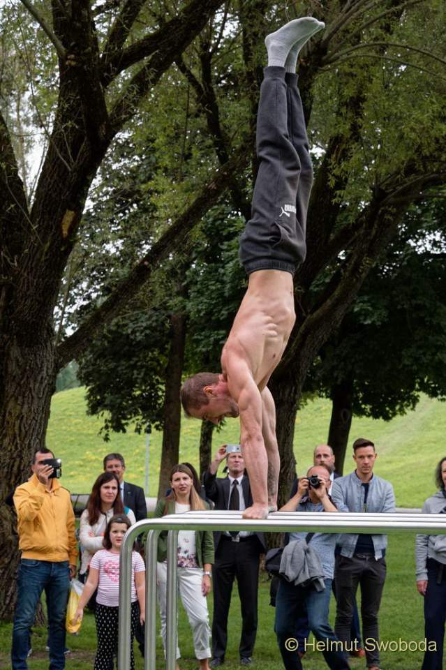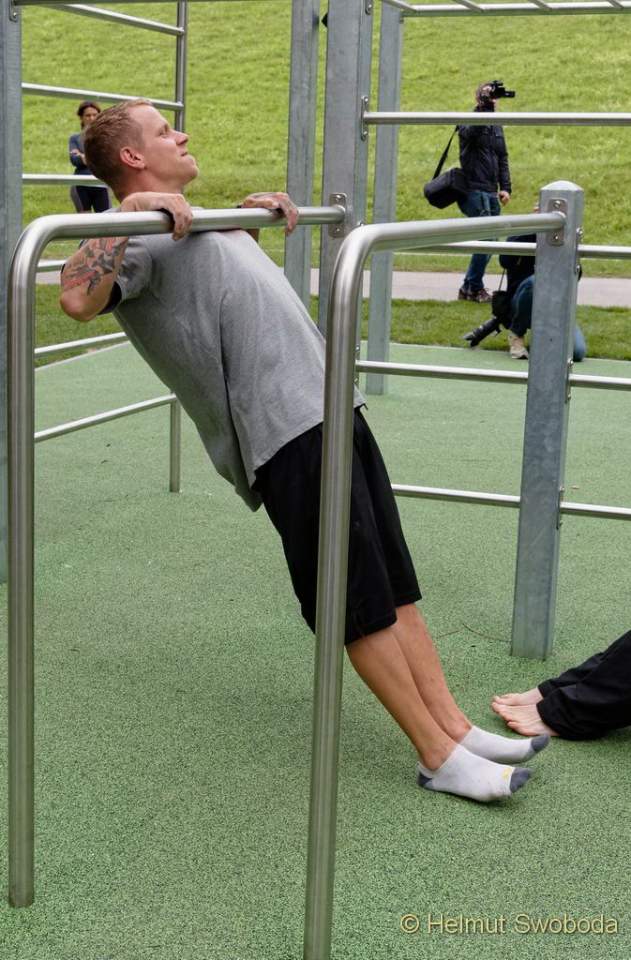 Die AOK-Bewegungsinsel umfasst insgesamt neun Fitnessgeräte auf einer 70 Quadratmeter großen Grünfläche mitten im Olympiapark. Dazu zählen beispielsweise Rückenstrecker, eine Slackline, ein Springfeld und eine Calisthenics-Station. „Die Fitnessgeräte ermöglichen ein vielseitiges Ganzkörper-Training von Ausdauer, Kraft und Koordination“, erklärt AOK-Sportexperte Maximilian Zöller. Entsprechend dem funktionellen Training stehen natürliche Bewegungsmuster im Mittelpunkt. Dabei werden statt einzelner Muskeln ganze Muskelketten trainiert. „Dies betrifft gerade auch Muskeln, die bei einem großen Teil der Gesellschaft durch den sitzenden Lebensstil abgeschwächt sind“, merkt Zöller an.