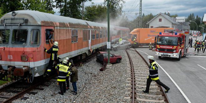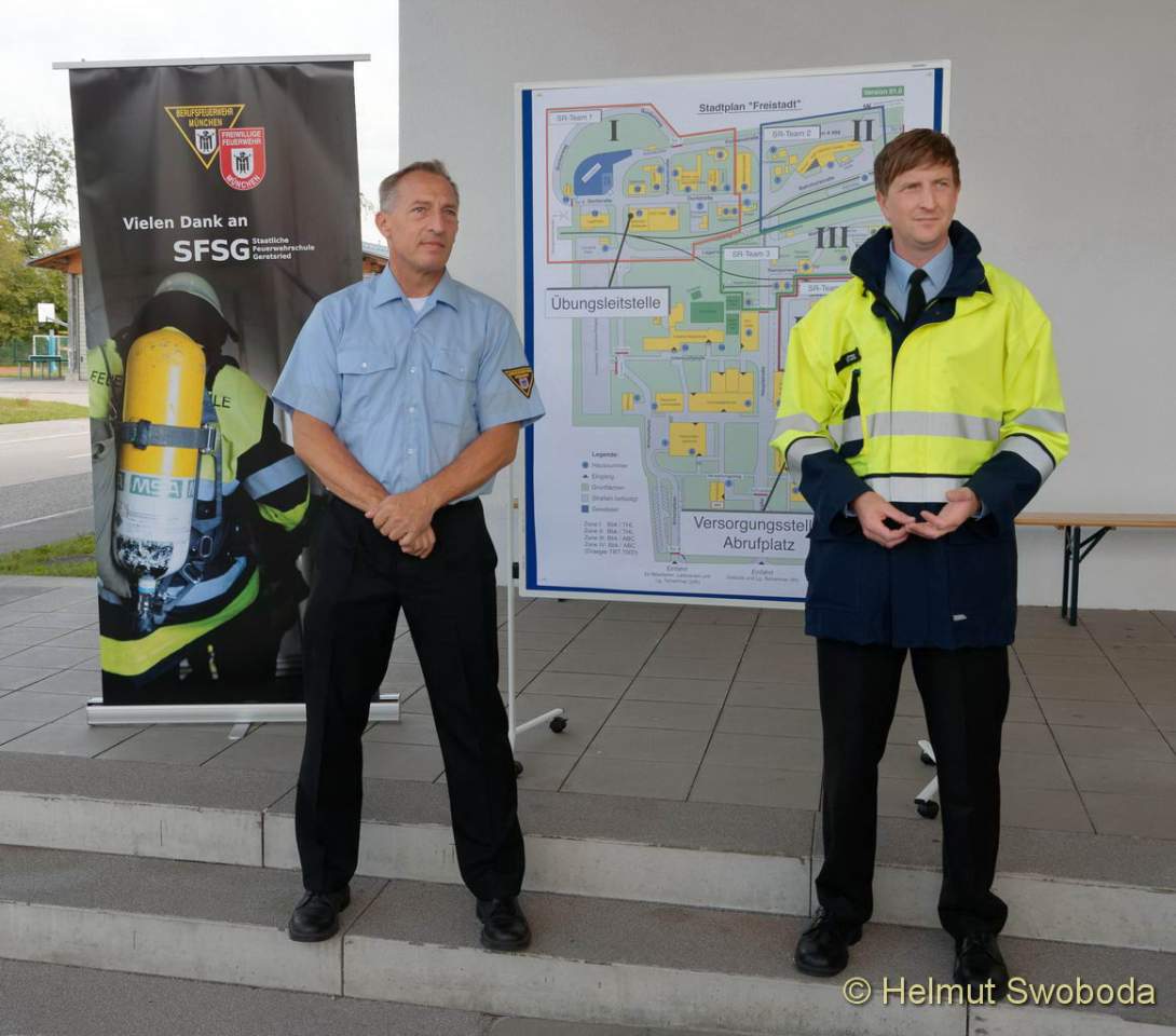 Drei Tage lang übten insgesamt 130 Einsatzkräfte das Vorgehen in verschiedenen Einsatzlagen in der staatlichen Feuerwehrschule Geretsried. Dabei wurden sie von 20 Darstellern bei der realitätsnahen Übung der verschiedenen Szenarien unterstützt.