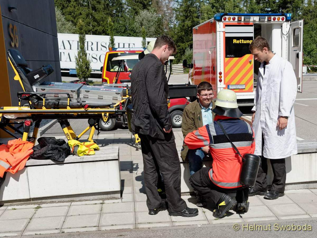 Drei Tage lang übten insgesamt 130 Einsatzkräfte das Vorgehen in verschiedenen Einsatzlagen in der staatlichen Feuerwehrschule Geretsried. Dabei wurden sie von 20 Darstellern bei der realitätsnahen Übung der verschiedenen Szenarien unterstützt.
