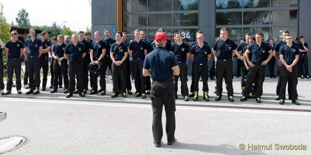 Der Teilnehmerkreis bestand in erster Linie aus angehenden Feuerwehrleuten aus dem Grundlehrgang der Berufsfeuerwehr München. Aber auch erfahrene Feuerwehrbeamte, die eine Fortbildung zum Gruppenführer machen, waren vor Ort. Die Teilnehmer aus dem Grundlehrgang hatten hier zum ersten Mal die Gelegenheit, auf unbekannten Terrain realitätsnah Einsätze abzuarbeiten.