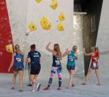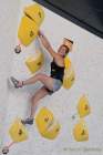 Lucia Dörffel (DAV Chemnitz) war zwar nicht weit weg vom Top im ersten Boulder, bieb aber schließlich doch erfolglos. Am Doppeldyno im zweiten Boulder deutete sie zwar Chancen an, musste sich aber geschlagen geben. Eine filigrane Plattenschleichtechnik demonstrierte sie im dritten Boulder, wo ihr als Erster ein Top gelang. Der vierte Boulder gelang ihr fast mühelos.