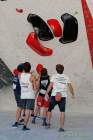 Yannick Flohé (DAV Aachen) blieb ebenfalls der erste Boulder verwehrt. Am zweiten Boulder deutete er zwar einen möglichen Erfolg an, rutschte dann aber an der Lacktextur eines großen Grifftrittes aus. Boulder drei sah bei ihm vielversprechend aus: Doppeldyno samt Weiterleiter liefen kontrolliert, und auch die anschließenden Züge hatte er im Griff, fiel am vorletzten Zug dann aber doch. Bis dahin war er derjenige, der am weitesten kam. Im letzten Boulder wollte ihm der Anfangsdyno nicht gelingen.