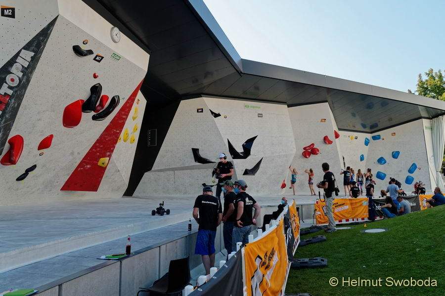 Bereits in den Vorrunden ist deutlich geworden, wie sehr sich der Routenbau fortentwickelt hat. Fast durfte man den Eindruck haben, dass die erzwungene Corona-Wettkampfpause bei den Routenschraubern noch einmal einen zusätzlichen Impuls bewirkt hat. Komplex, vielseitig und herausfordernd vom ersten bis zum letzten Zug gestalteten sich denn auch alle Boulderprobleme in allen Wettkampfrunden – und ganz besonders natürlich im Finale.