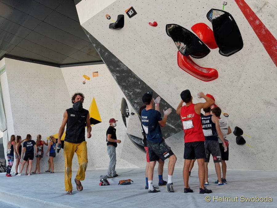 So spannend und unberechenbar kann ein Kletterwettkampf laufen: Philipp Martin zog als Sechstplatzierter ins Finale ein und ging als Sieger daraus hervor. Die Entscheidung fiel erst am letzten Boulder. Am letzten Boulder fiel auch die Entscheidung bei den Damen, war allerdings ein bisschen vorhersehbarer als bei den Herren: Hannah Meul ging bereits aus dem Halbfinale als Bestplatzierte hervor. Ein Spaziergang war das Finale freilich weder für sie noch für die anderen Damen und Herren. Die Boulderprobleme erwiesen sich als ausgesprochen fordernd und spektakulär. Unterm Strich war der erste Wettkampf auf nationaler Ebene nach der Corona-Pause trotz fehlendem Publikum ein voller Erfolg. Aus sportlicher Sicht freute sich Bundestrainer Urs Stöcker über das Event: „Der Routenbau war spektakulär. Die Athletinnen und Athleten konnten daran unter Beweis stellen, dass sie wieder in Wettkampfform sind.“