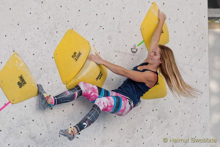 Einen richtig guten Start legte Alma Bestvater hin, sie kletterte im Flash über die heikle Platte. Auch der zweite Boulder gelang ihr in diesem Stil. Am dritten Problem hatte sie Probleme – so wie alle Konkurrentinnen zuvor. Leider wollte ihr nicht einmal die Zone gelingen. Dass sie auch am letzten Boulder den Topgriff nicht erreicht war am Ende nicht schlimm: Weil das Halbfinale insgesamt sehr hart geschraubt war, reichten zwei Tops für den Einzug ins Finale der besten Sechs.
