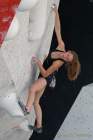 Hannah Meul kam ging als Letzte ins Finale. Man durfte gespannt sein, wie sie den ersten Boulder angehen würde: Mittelsteil und an großen flachen Griffen kam er ihrem Kletterstil entgegen. Und tatsächlich schmiegte sich zwar so elegant an die Wand, dass man den Eindruck hatte, die Schwerkraft gälte für sie nicht. Den Topgriff verfehlte sie trotzdem, wenn auch knapp. Am zweiten Boulder blieb ihr dieses Schicksal erspart: Im vierten Anlauf sprang sie Alma hinterher und zog durch bis zum Top. Elegant an die Wand schmiegen blieb auch in Boulder drei ihre Stärke. Leider aber mit ähnlichem Effekt wie bei Boulder eins: Es blieb bei der Zonenwertung. Den letzten und entscheidenden Boulder schaffte sie im Flash und machte damit ihren Titel klar.
