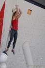Lucia Dörffel (DAV Chemnitz) war zwar nicht weit weg vom Top im ersten Boulder, bieb aber schließlich doch erfolglos. Am Doppeldyno im zweiten Boulder deutete sie zwar Chancen an, musste sich aber geschlagen geben. Eine filigrane Plattenschleichtechnik demonstrierte sie im dritten Boulder, wo ihr als Erster ein Top gelang. Der vierte Boulder gelang ihr fast mühelos.