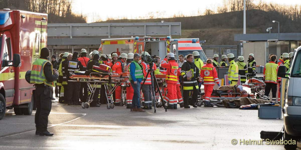 “Ich bin sehr zufrieden, denn alle Einsatzkräfte haben heute eindrucksvoll die Professionalität und Leistungsfähigkeit des gesamten bayerischen Hilfeleistungssystems unter Beweis gestellt.” Mit diesen Worten resümierte Bayerns Innenminister Joachim Herrmann die rund fünfstündige ‘Europameisterschaftsübung’ (EMÜ19) in München. Beteiligt waren insgesamt rund 2.000 Einsatzkräfte von Polizei, Feuerwehr München, Hilfsorganisationen, Rettungsdienstunternehmen, Bundespolizei, Technisches Hilfswerk, Sicherheitsdienste der teilnehmenden Veranstalter sowie Statisten. Weitere Beteiligte waren sieben Münchner Kliniken und die Münchner Verkehrsgesellschaft MVG. Veranstaltet wurde die Übung von Branddirektion und Polizeipräsidium München, sowie dem Deutschen Fußball-Bund an drei verschiedenen Orten mit unterschiedlichsten Szenarien. “Bei der heutigen beeindruckenden Übung wurden komplexe Einsatzszenarien von allen Beteiligten hervorragend und in enger Zusammenarbeit gemeinsam gelöst”, lobte Herrmann.