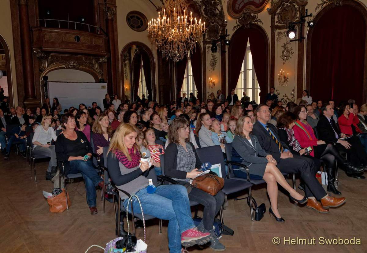 München, 21.03.2018. Kinder aus allen Regierungsbezirken haben ihre prämierten Vorschläge zum Thema Kinderrechte vorgestellt: „Die Vielfalt an Ideen – vom selbst gestalteten Bilderbuch über ein Kinderrechte-Memory bis hin zu einem Haus der Geborgenheit von Kindern für Kinder – das begeistert mich. Wir erkennen aber auch, wie wichtig Rechte auf Schutz, Sicherheit, Mitbestimmung und Bildung den Mädchen und Buben sind. Wir als Erwachsene sind deshalb ganz klar aufgefordert, die Kinderrechte zu stärken – in der Kita genauso wie in der Schule“, so Ministerialdirektor Michael Höhenberger, der Amtschef des Bayerischen Sozialministeriums anlässlich der Preisverleihung in München.