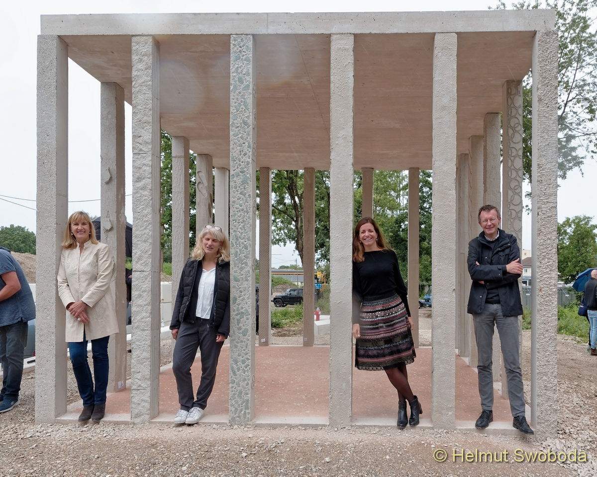 Hier sieht man das Bauen der Zukunft: Auf dem Gelände der Bayernkaserne haben Studierende der Hochschule München auf Einladung des Kommunalreferats einen 20 Quadratmeter großen Pavillon aus Recyclingbeton gebaut.