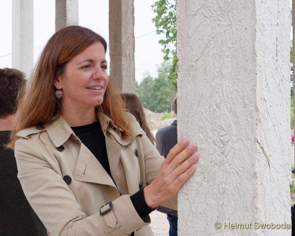 Das Projekt soll die Einsatzmöglichkeiten des nachhaltigen Baustoffs demonstrieren, der zu 100 % aus Abrissmaterial von vor Ort hergestellt wurde. Er zeigt so die Bandbreite der Gestaltungsmöglichkeiten von Recyclingbeton (R-Beton). Vier interdisziplinäre Gruppen aus Bauingenieur- und Architekturstudierenden gestalteten jeweils vier Stützen aus Sichtbeton mit unterschiedlichen Oberflächenstrukturen, von rau bis fein, plastisch, verspielt oder streng.