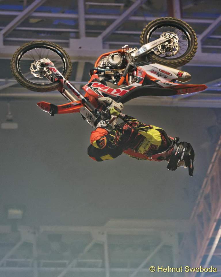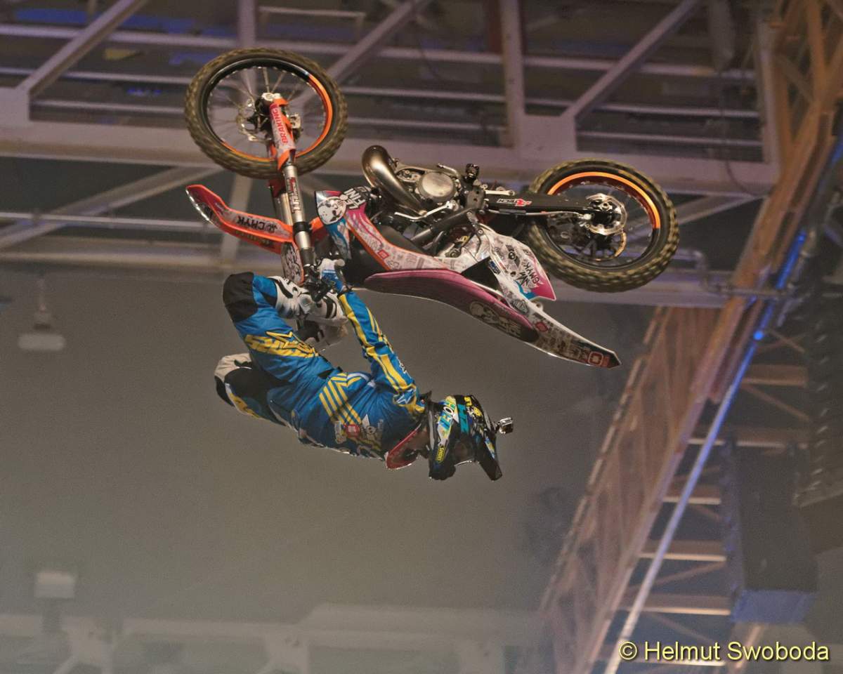 Nach dem spektakulären Champions League Einzug des FC Bayern München unter der Woche, stand München erneut im Fokus der internationalen Sportwelt. In der Olympiahalle München trafen sich am Samstag 11 der besten Freestyle Motocross Sportler der Welt zur fünften Runde der FMX Europameisterschaft.