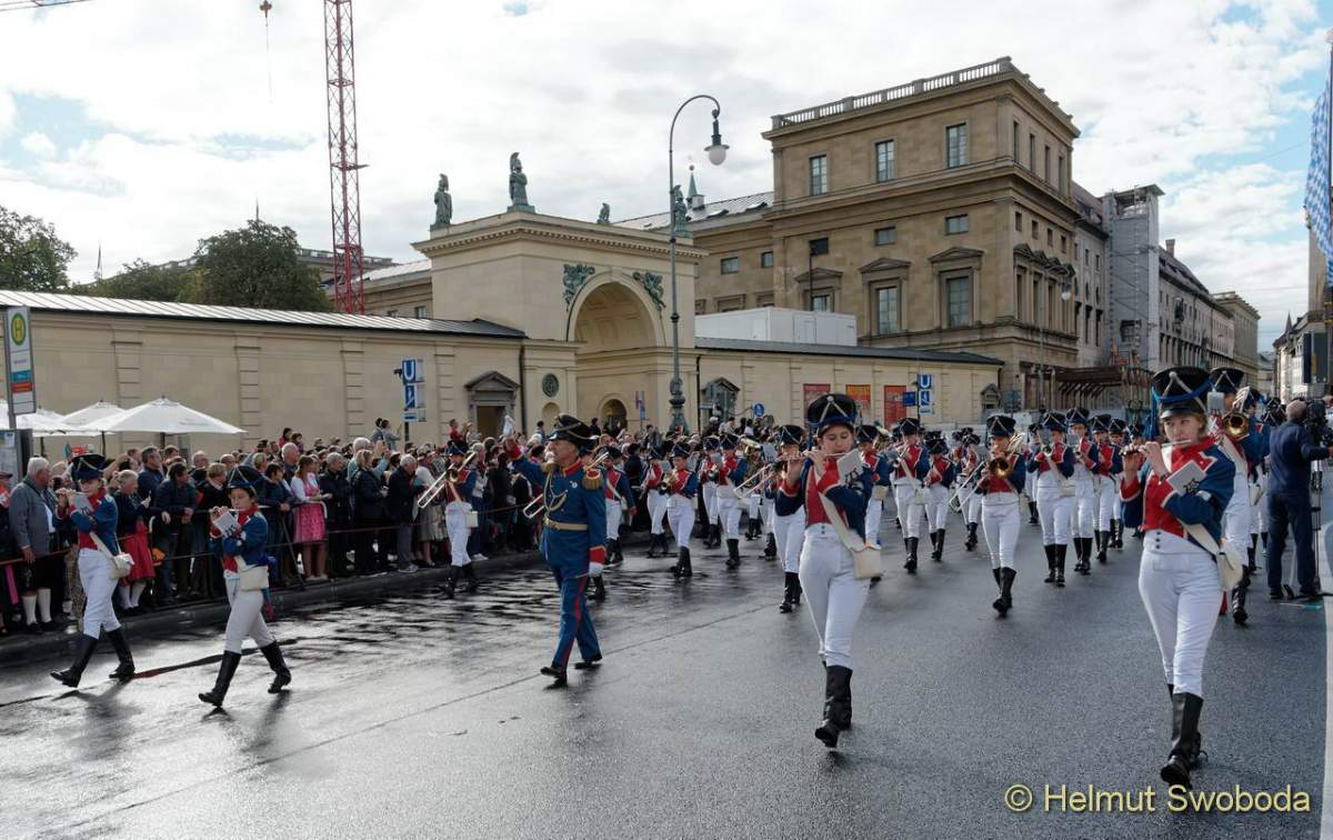 Der Trachten- und Schützenzug, der im Jahre 1835 zum ersten Mal zu Ehren der Silberhochzeit von König Ludwig I. und Therese von Bayern und dem 25-jährigen Bestehen des Oktoberfestes stattfand, ist heute einer der Höhepunkte des Oktoberfestes. Rund 9.000 Mitwirkende, gegliedert in 60 Zugnummern, zogen vom Max II Monument durch die Münchner Innenstadt zur Theresienwiese und präsentierten die Vielfalt von Trachten, Musiken, Brauchtum und Volkstanz.
