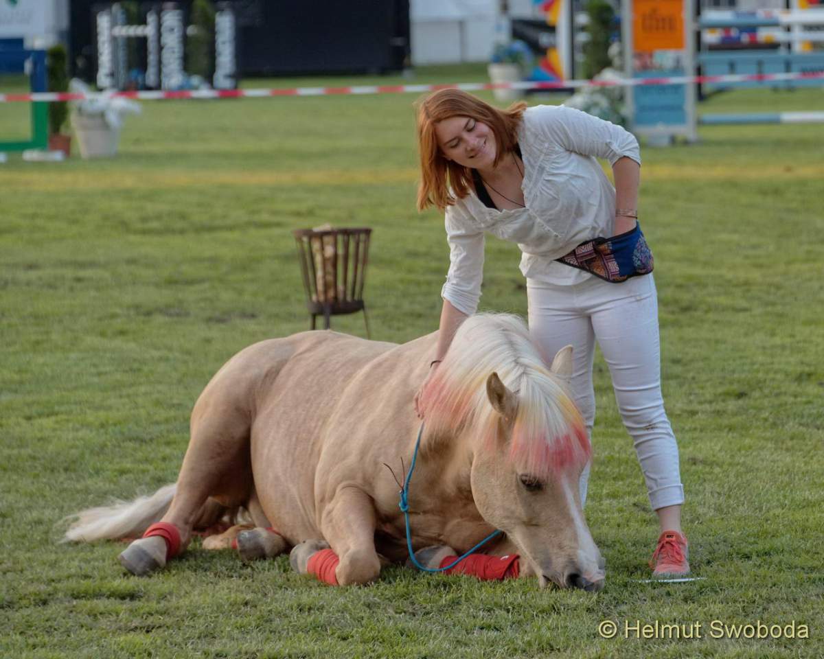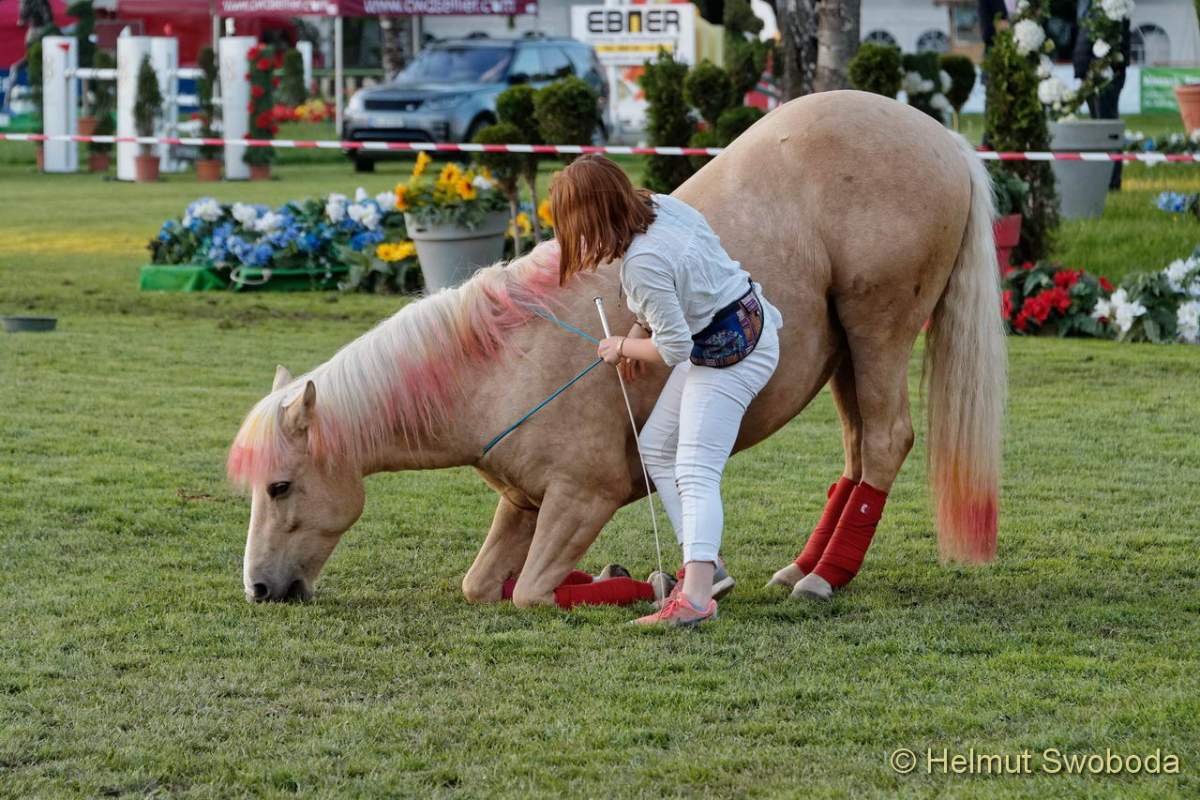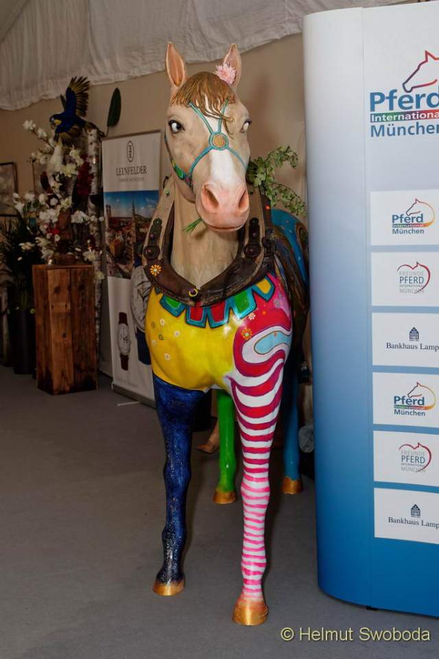 Wenn auf der Olympia-Reitanlage vier Tage lang Pferdefans aller Sparten aufeinander treffen, darf auch ein Engagement für den guten Zweck nicht fehlen. So wird seit einigen Jahren im Rahmen einer ganz besonderen Auktion ein knallbuntesCharity-Pferd versteigert.