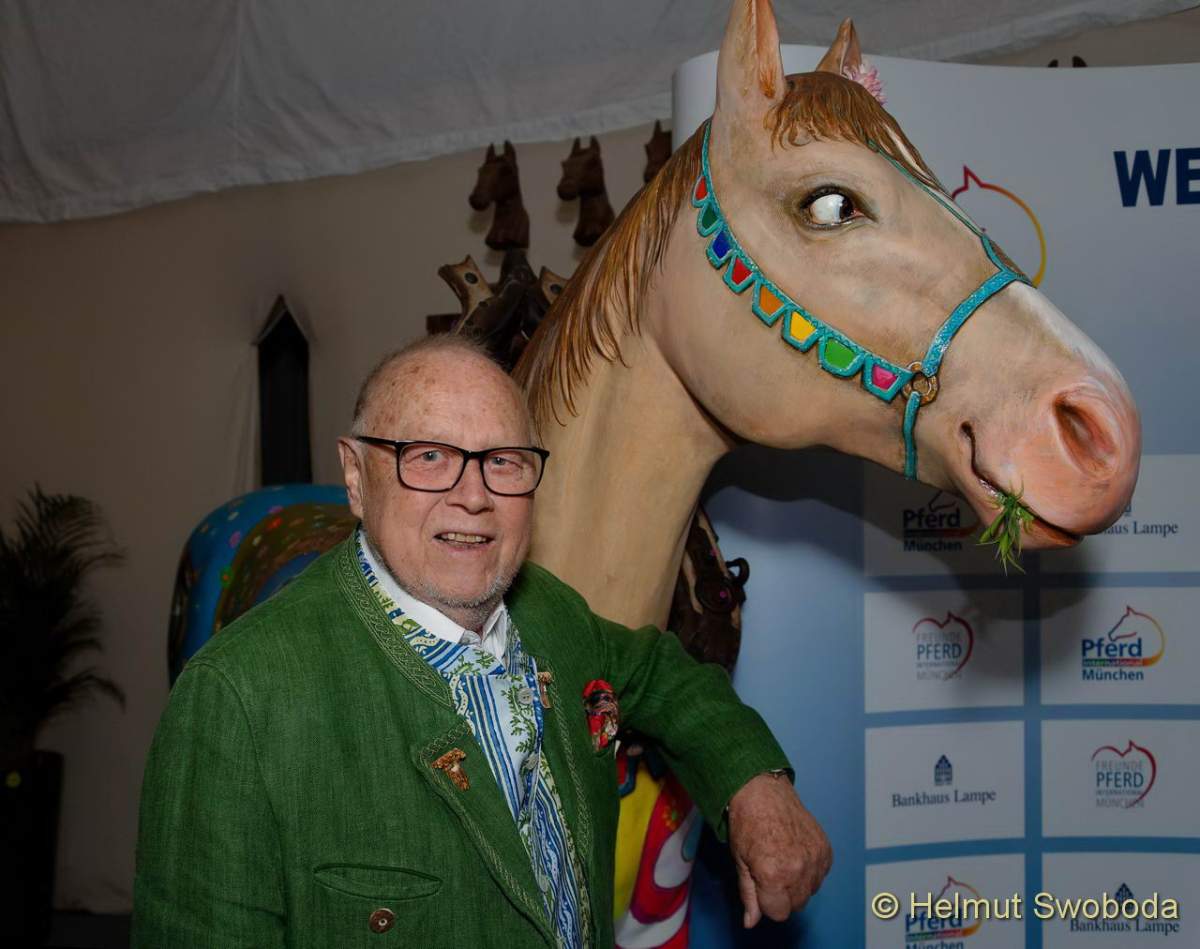 Mit Herz, Leidenschaft und dem Blick für das Besondere jeder einzelnen Persönlichkeit zaubert Bernhard Prinz seine Kunst, die einfach Spaß macht. Mitte April wurde dem Münchner Künstler und Karikaturist ein lebensgroßes weißes Kunststoff-Pferd in sein Münchner Atelier geliefert. Aus dem Pferderohling ist ein typischer „Prinz“ entstanden –ein buntes Meisterwerk ganz in seinem charakteristischen Stil. Mit gekonnten Pinselstrichen wurde dem Vierbeiner Schicht für Schicht eine sehr besondere Pferdepersönlichkeit gegeben.