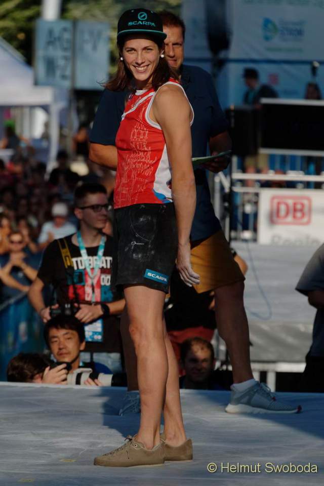 Bei diesem Boulder-Krimi ging die Leistung von Janja Garnbret fast ein wenig unter: Sie blieb bei allen vier Routen fehlerfrei und toppte jeden Boulder im ersten Versuch – und das in einem internationalen Finale! München scheint der jungen Slowenin offensichtlich zu liegen: Wie 2017 holte sie den Tagessieg in der bayerischen Landeshauptstadt auch dieses Jahr!