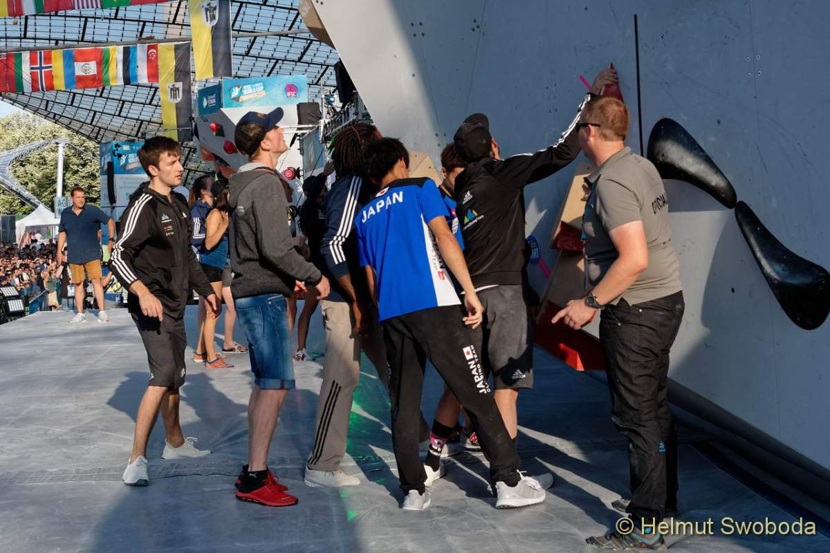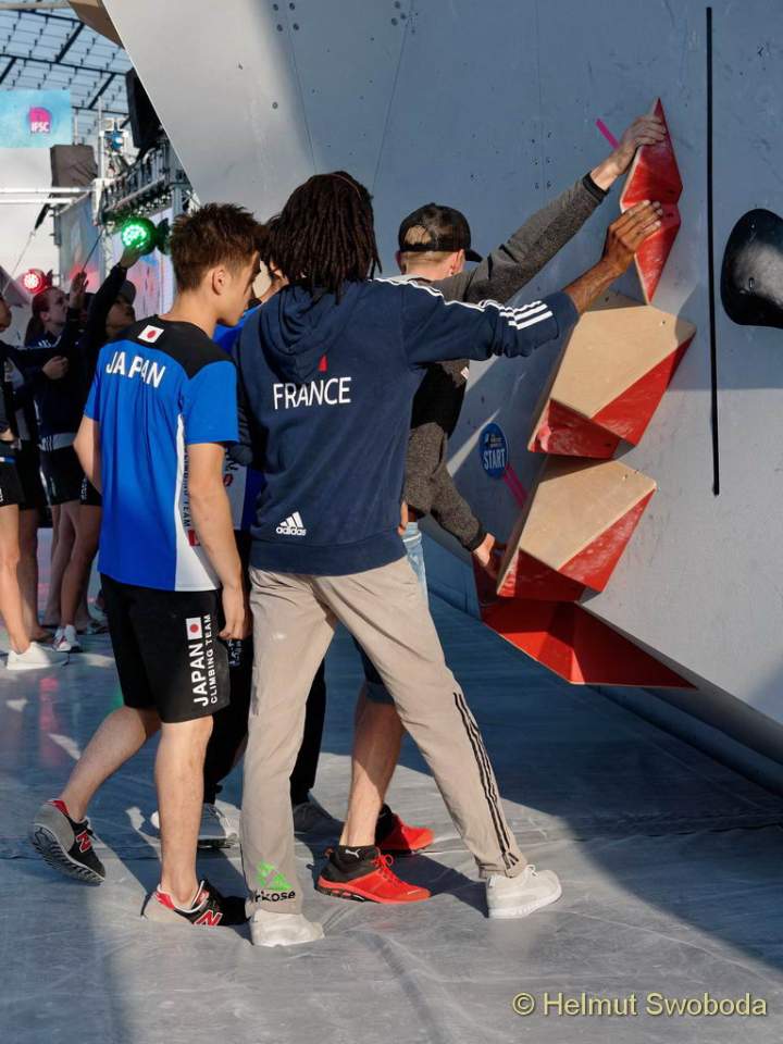 Auch die rund 250 Sporterlinnen und Sportler aus 38 Nationen gaben ihr Bestes. Allen voran das japanische Team, das sich gleich mit neun Herren und sechs Frauen für den Kreis der jeweils besten 20 qualifizierte. Doch auch aus den anderen starken Kletternationen boulderten sich mehrere Stars in die vorletzte Runde. So stellte Österreich zwei Männer und vier Damen, Frankreich zwei Männer und drei Damen und Slowenien zwei Herren und zwei Frauen. Für Deutschland qualifizierten sich Alma Bestvater (DAV Weimar), Alex Averdunk (DAV München-Oberland), Yannick Flohé (DAV Aachen) sowie Jan Hojer (DAV Frankfurt/Main).