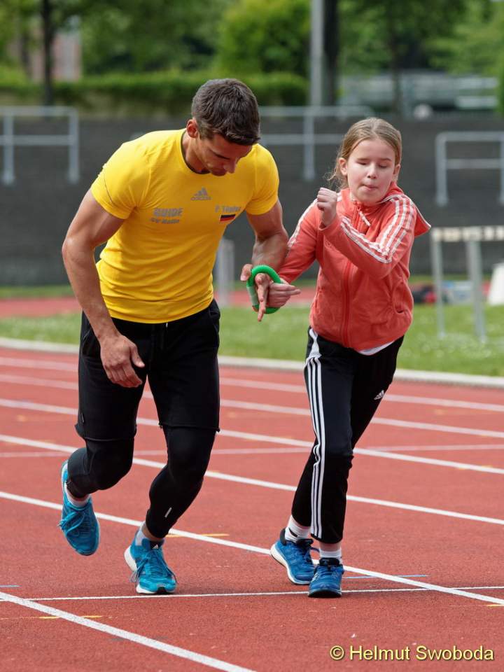 Im Vorprogramm begeisterten auch die blinden Sprinter des Behindertensports im Post-Sportverein das Publikum, indem sie die Zeitläufe gegen sehende Läufer gewinnen konnten.