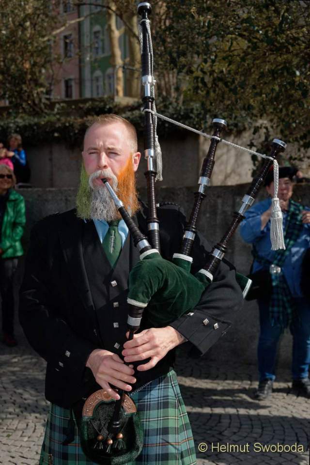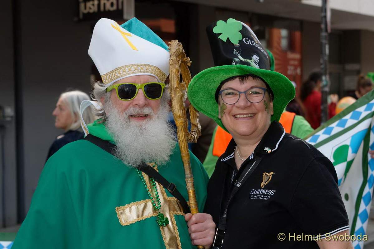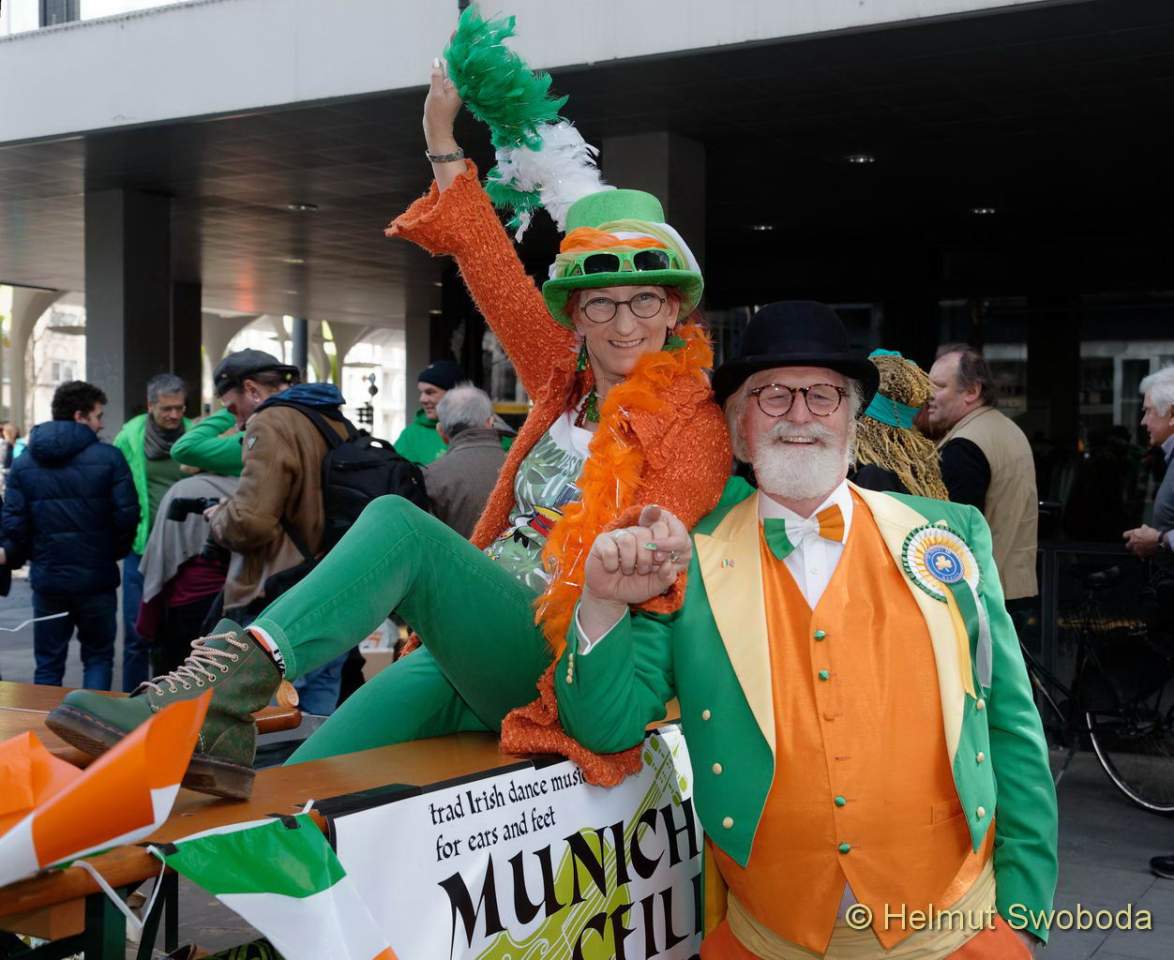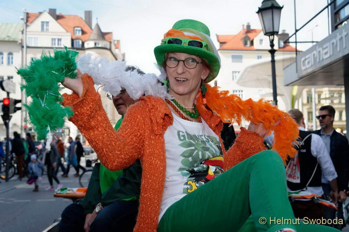 Gestartet wurde wie immer in Schwabing, an der Münchner Freiheit, von wo aus es dann über die Leopold- und Ludwigsstraße zum Wittelsbacher-Platz ging. Insgesamt 62 Gruppen mit knapp 1500 Teilnehmern haben die Parade in einen bunten, multikulturellen und prächtigen Festzug verwandelt.Neu dabei war: B-Irish (Irish Bayrische Folxmusic), Darth Polly (Irish Folk Band aus Mittelfranken), Eltern-Kind-Zentrum Schwabing, Schnuffi Malone and the Bachelors (Bodensee, entstanden aus einem Jungsellen-Abschied, der sie u. a. nach Irland schlug), Mathias Selien mit seinem irischen Wolfshund (extra aus Celle angereist), Katharina Maya und Familie mit ihren drei irischen Wolfshunden (Schleswig-Holstein). – Nach einer Pause wieder dabei: Freundeskreis Clonakilty e. V. 1991 (Waldaschaff bei Aschaffenburg), München Rugby Football Club, The Donegals (Allgäu), The Entity Theatre (englischsprachige Theatergruppe aus München).