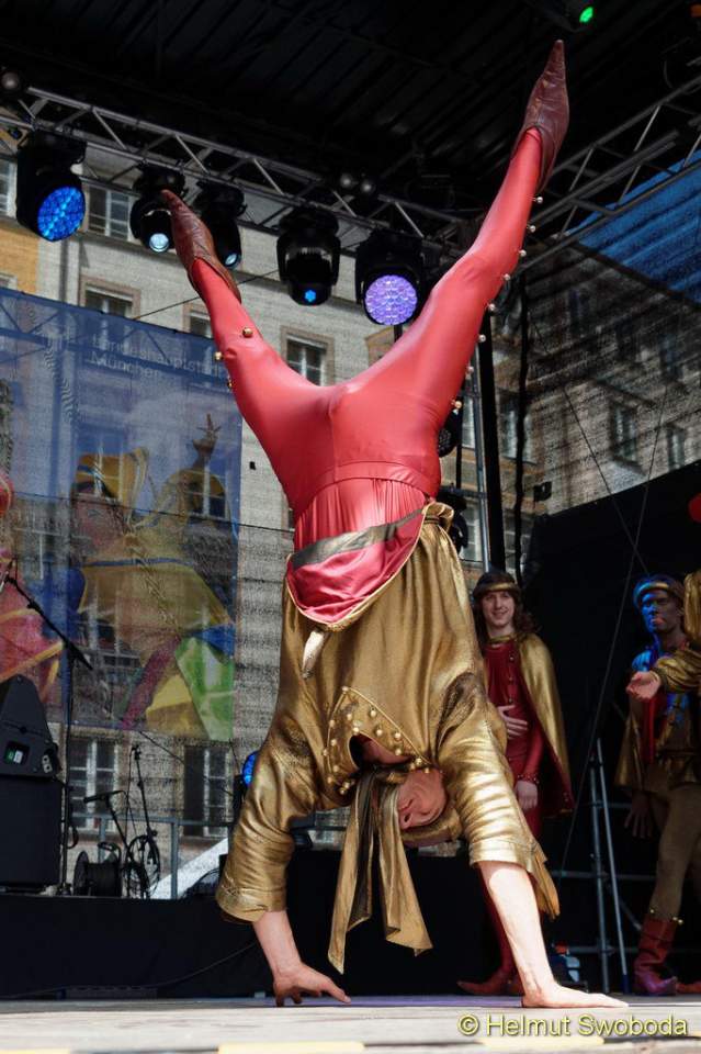 Nach der offiziellen Eröffnung durch Oberbürgermeister Dieter Reiter am Samstag zeigte sich am Marienplatz die bunte Vielfalt ausländischer Kulturen: Musik und Tanz von in München beheimateten Gruppen aus Afrika, Indonesien, Polen und Lateinamerika begeisterten die Zuschauer. Selbst Tanzen war angesagt beim „Tanzvergnügen am Marienplatz“, wo Tanzlehrer und das „Monaco Swing Ensemble“ beste Laune verbreiteten, und im Alten Rathaussaal, wo das Kulturreferat-Volkskultur bestens besuchte Münchner-Française-Tanzkurse anbot. Die Geburtstagsparty erwies sich als wetterfest, denn als am Samstagabend der Regen kam, trübte das die Stimmung der Geburtstagsgäste keineswegs: Mit der Band „Timerunner“ rockten sie am Marienplatz ab bis zum Schluss.