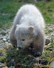 Das kleine Eisbärenmädchen und der Eisbärenjunge folgen ihrer Mama meist brav auf Schritt und Tritt in die noch weitestgehend unbekannte Welt der Hellabrunner Eisbären-Landschaft. Nur, als Giovanna ins flache Wasser geht und mit einem ihrer Lieblingsspielzeuge, einem großen Plastikball spielt, bleiben die Kleinen vorerst ehrfurchtsvoll zurück. Das forsche Eisbärenmädchen, das mit sieben Kilo Körpergewicht ein ganzes Kilo schwerer ist als ihr Bruder, will dann doch wissen, wie sich Wasser anfühlt. Die Kleine ist sofort in ihrem Element, paddelt im flachen Wasser umher und versucht kurz darauf, sich wieder ans sichere Land zu begeben. Ganz schön anstrengend mit so kleinen Beinchen!
