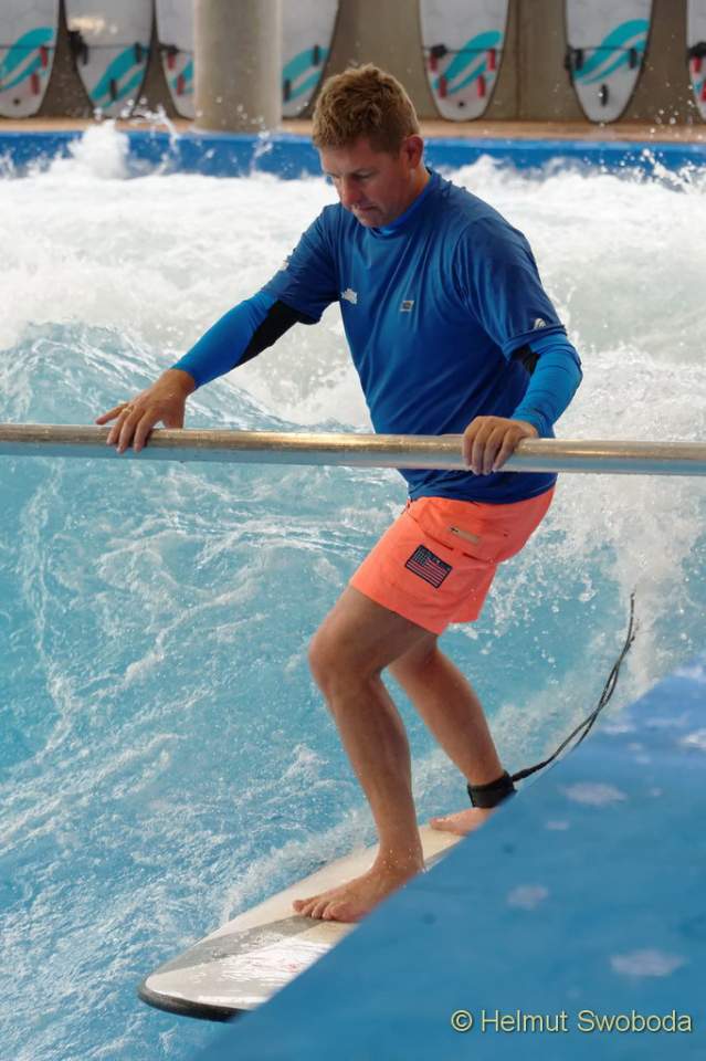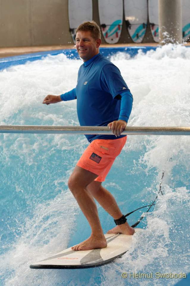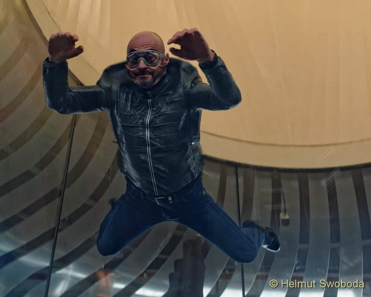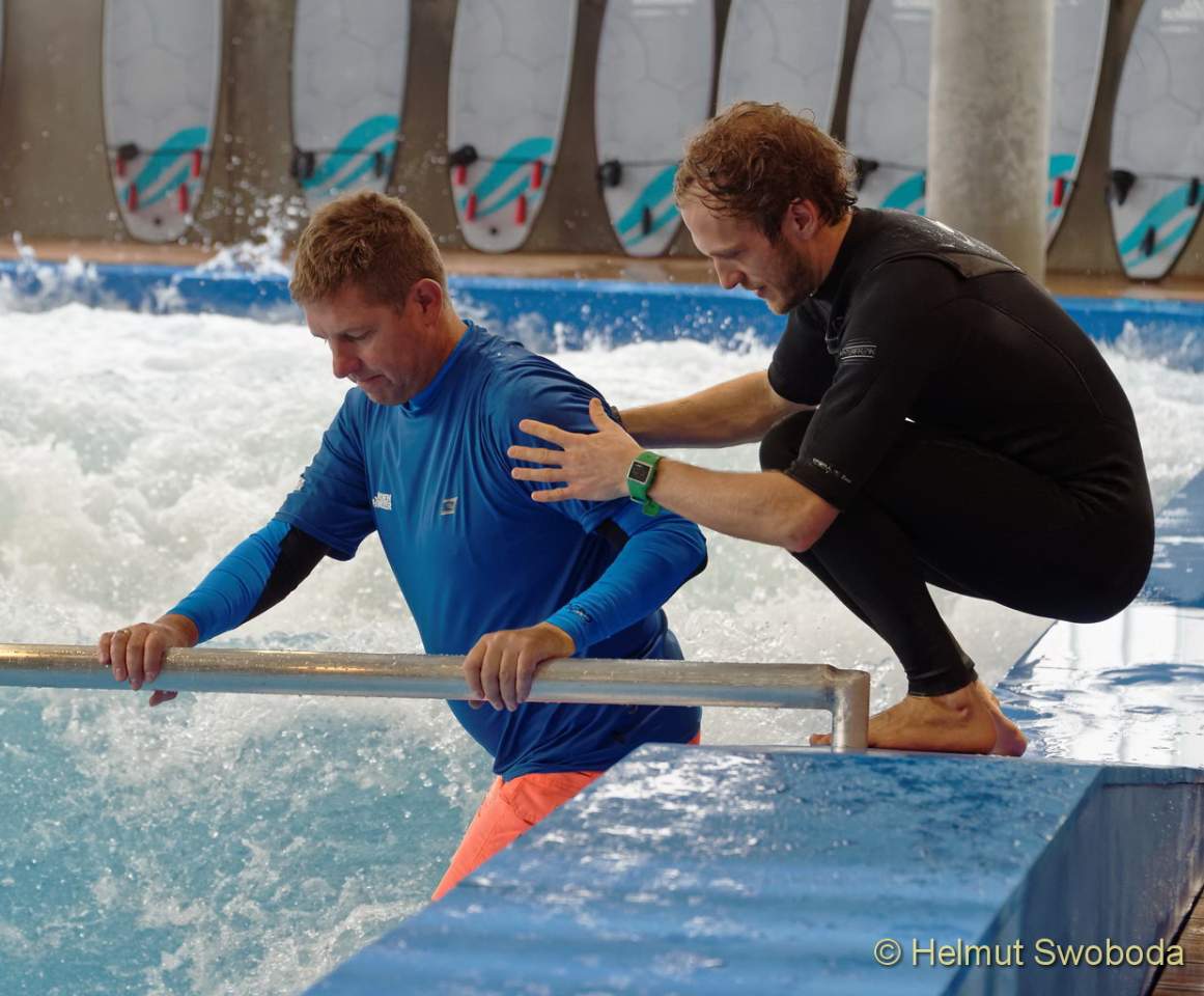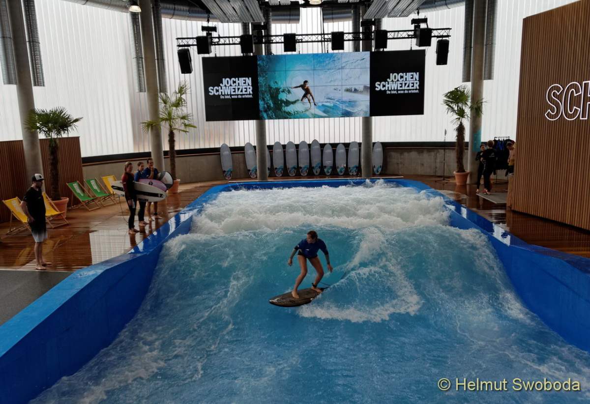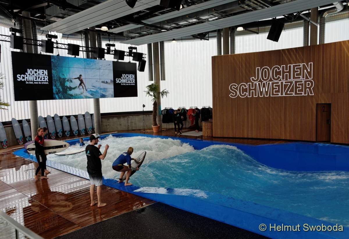 Auch Taufkirchens Bürgermeister Ullrich Sander nahm an der Talk Runde teil. Er freute sich unter anderem darüber, dass seine Gemeinde nun mehr nicht nur als der Vorort von München wahrgenommen wurde, sondern dass die Jochen Schweizer Arena mit ihren spannenden Angeboten nun als Landmark zur Orientierung Richtung Taufkirchen diente. Grund genug für ihn vor einem großen Publikum später seine ersten Wellenritte zu wagen und auch gleich das Bodyflying im Windtunnel auszuprobieren.
