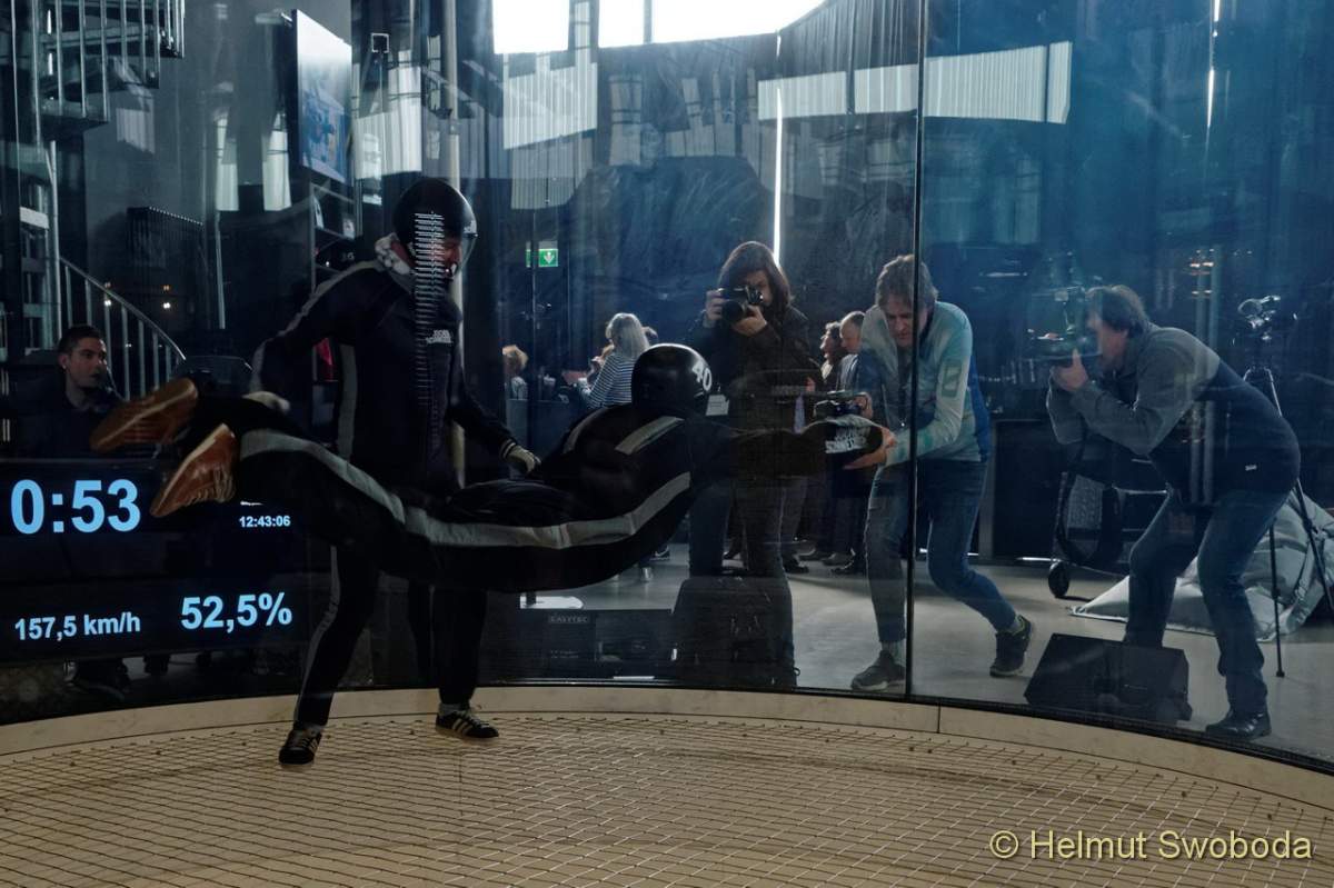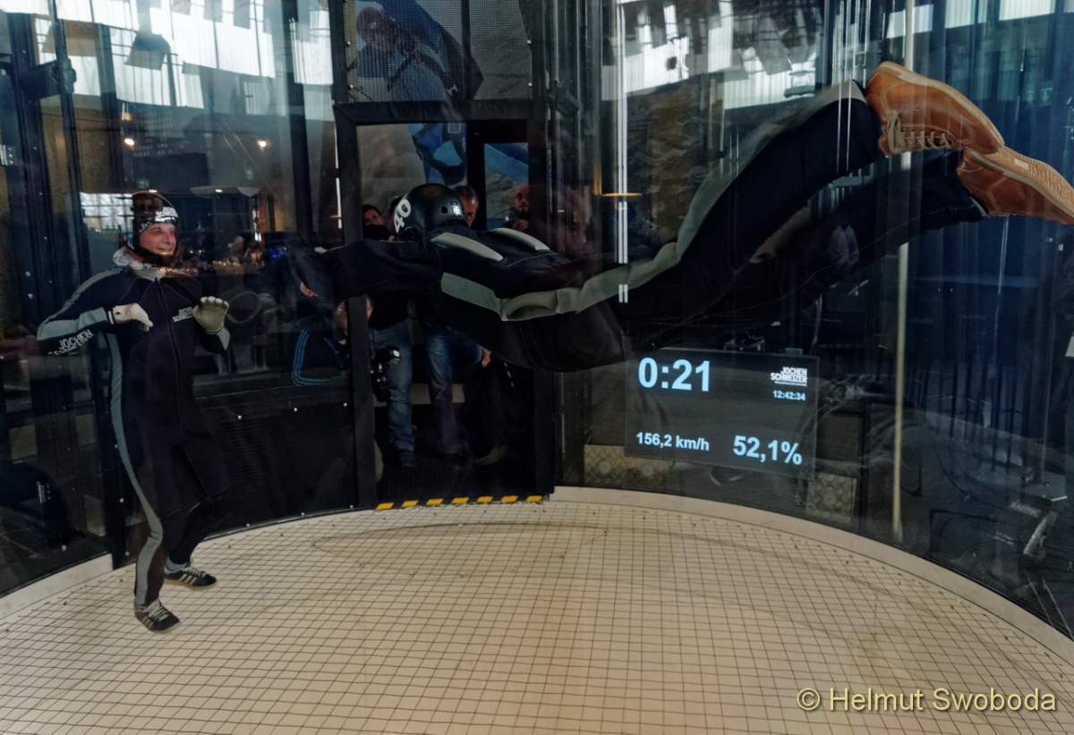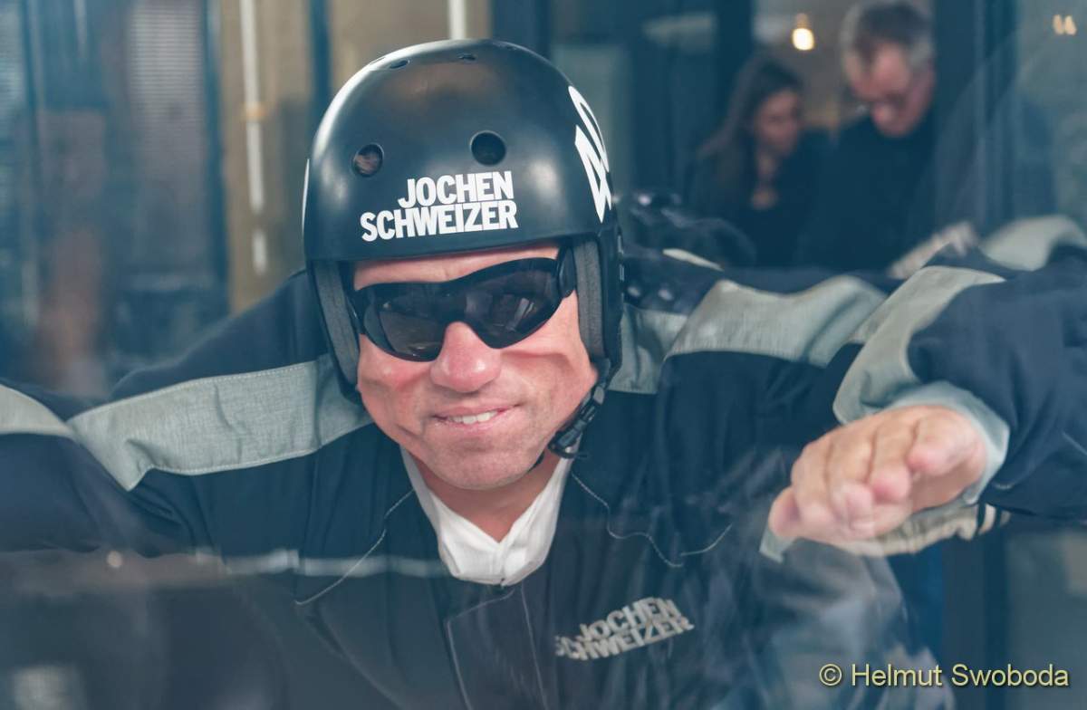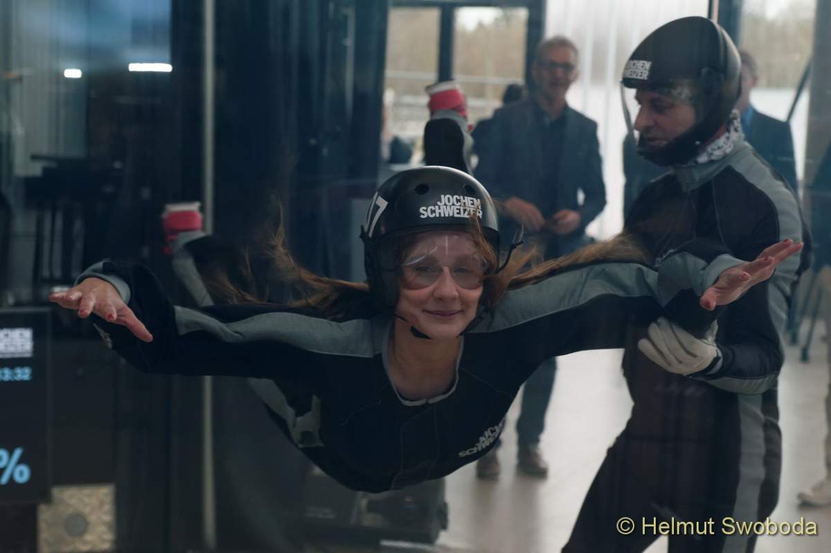 Den Auftakt für die Veranstaltung bildete Staatsministerin Ilse Aigner, die frühmorgens wagemutig noch vor dem offiziellen Event in dem weltweit modernsten Windkanal der Welt das Fliegen mit nichts als dem eigenen Körper erlebte. „Das war ein großartiges Erlebnis“, kommentierte sie begeistert ihr erstes Freiflugerlebnis, „eine echt tolle Erfahrung, ich wollte schon immer mal Fallschirmspringen, habe mich das aber nie getraut. Hier gibt es die Möglichkeit, das einmal gefahrlos auszuprobieren.“ Doch auch die touristische Bedeutung der Arena hob die bayerische Wirtschaftsministerin hervor: „Es ist eine tolle Angelegenheit für den Tourismus und ein Besuchermagnet für die ganze Region: Das ist das erste Angebot, bei dem man rund um das Jahr Indoor einfach seinen Traum verwirklichen kann.“Ab 10 Uhr hieß Jochen Schweizer die Presse willkommen: „Die Arena ist der Ort, an dem Sie sich selbst neu entdecken, an dem Sie über sich hinauswachsen können. Hier, in unserem Markenhaus, steht Erleben in der reinsten Form im Vordergrund“, brachte Jochen Schweizer, Gründer und Active Chairman der gleichnamigen Unternehmensgruppe, das Konzept der wegweisenden Multierlebnis-Destination auf den Punkt. „Mein persönlich größtes Abenteuer war dabei der Aufbau einer eigenen Gastronomie, die den Namen der Marke Jochen Schweizer verdient. Das Feedback vom Eröffnungswochenende und heute Abend zeigt mir, dass wir das geschafft haben.“