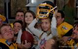 Der Vormittag hatte direkt mit einem Highlight begonnen. Vizepräsident Marketing Sven Mielenz der Munich Cowboys war sofort begeistert von der Initiative: „Die Munich Cowboys betreiben eine Sportart, die durch actiongeladene Szenen auf dem Feld den Zuschauern viel Spaß und Freude bereitet. Genau hier sind unsere Gemeinsamkeiten mit Zeit des Lachens e.V.. Sehr gerne helfen wir, wenn Zeit des Lachens e.V. die kleinen Patienten, ihre Angehörigen und das Klinikpersonal unterstützt. Es ist Teil unserer sozialen Verantwortung, Menschen in schwierigen Lebenssituationen Mut zu machen.“ So kamen 10 Spieler der Munich Cowboys und gingen in voller Montur auf die einzelnen Stationen um den Kindern vor allem wieder Mut zu schenken.